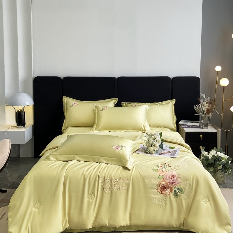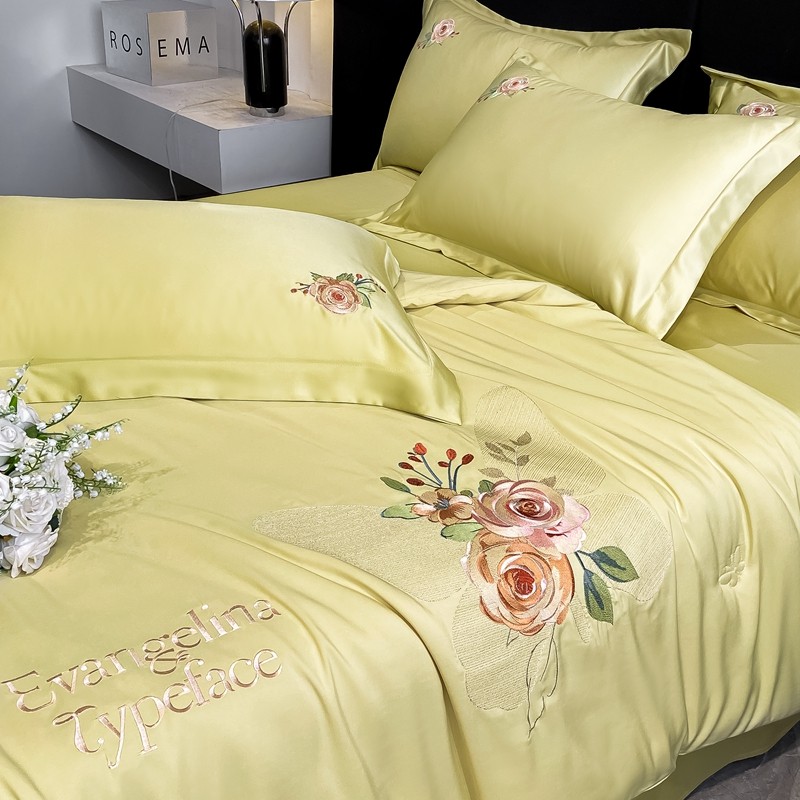 商品名称:伊人居 2024新款轻奢系列刺绣水洗真丝夏被四件套 蝶恋花-抹茶金