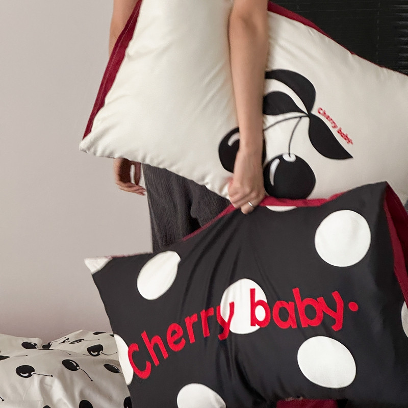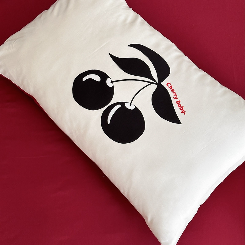 商品名称:桃喜2024新款甜辣潮酷数码印花大版全棉枕套 大版-黑樱桃