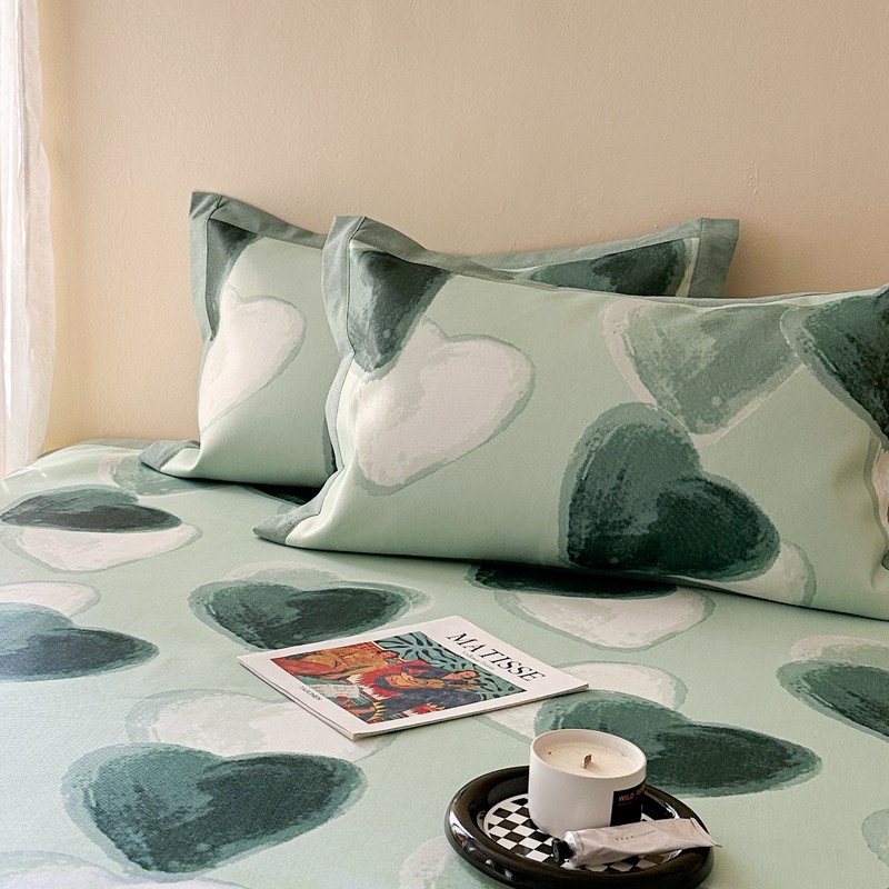 时年 2022新款全棉40支13372ins条纹款四件套 复古奶绿,复古奶绿