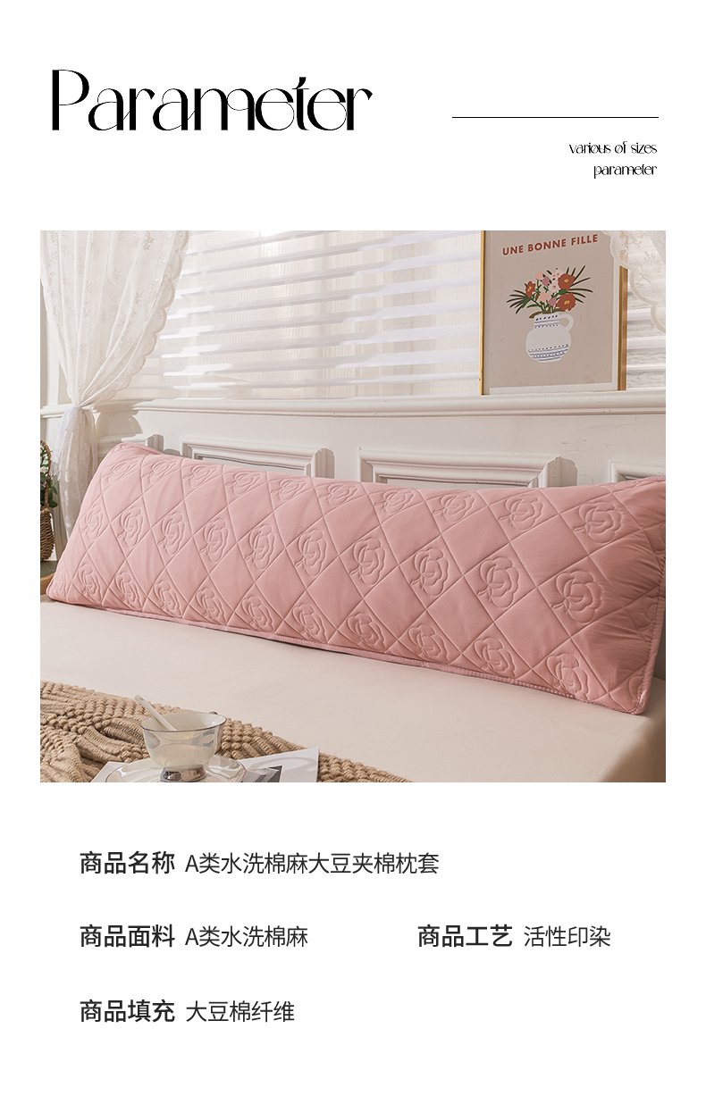 48x150【A类水洗棉麻夹棉枕套】