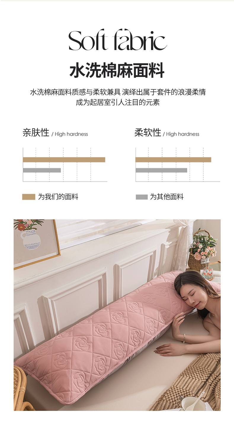48x120【A类水洗棉麻夹棉枕套】