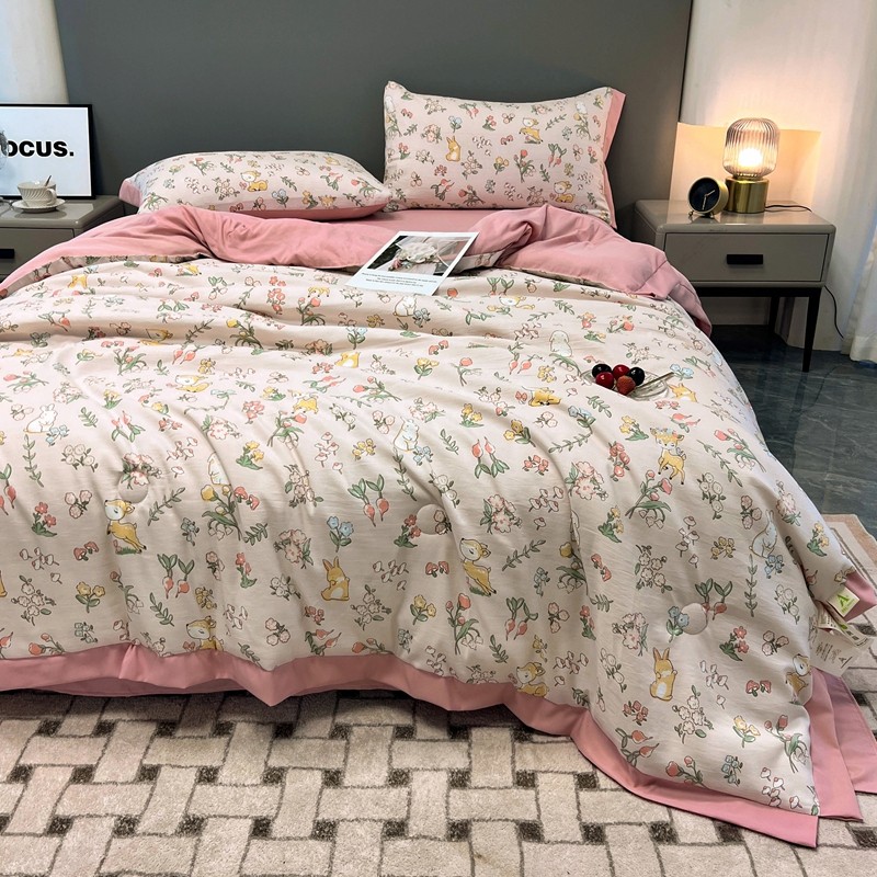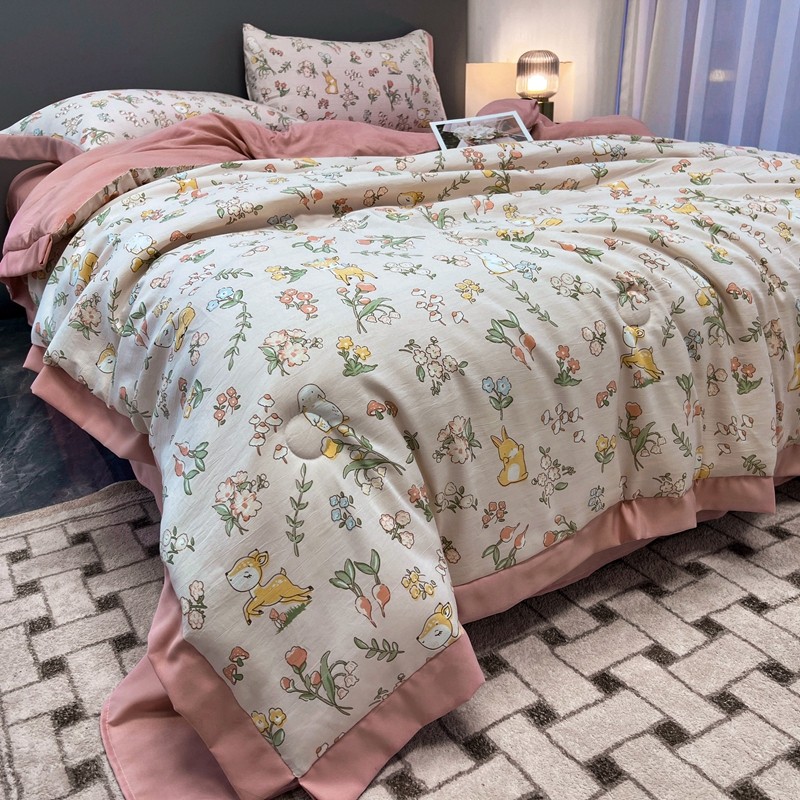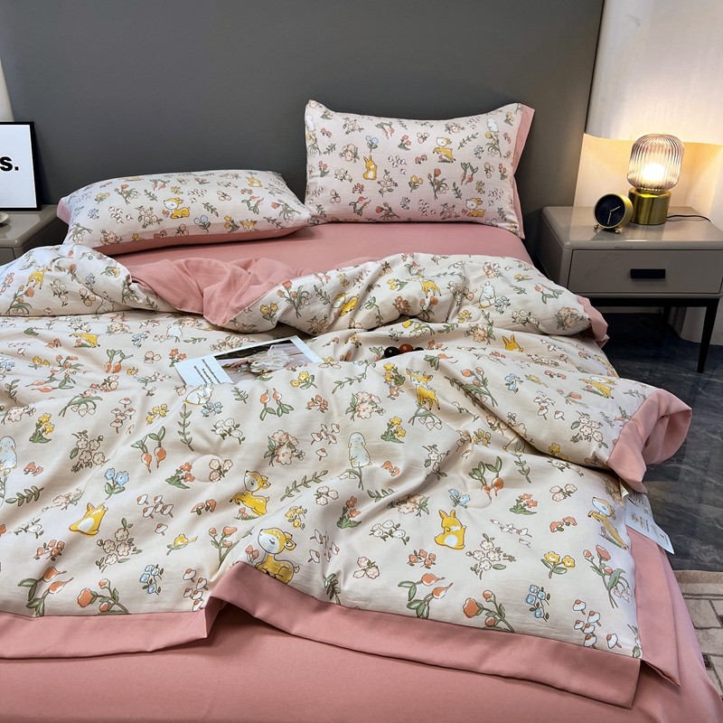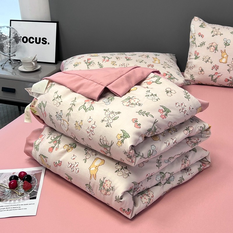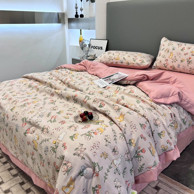 慕尚 2025新款水洗棉麻夏被四件套 花丛兔