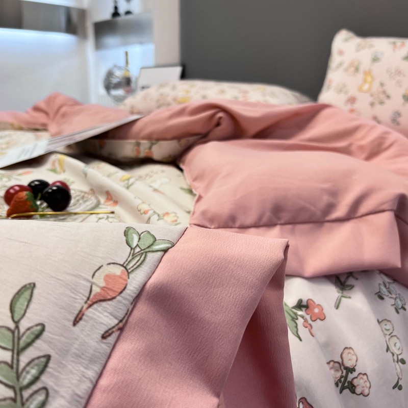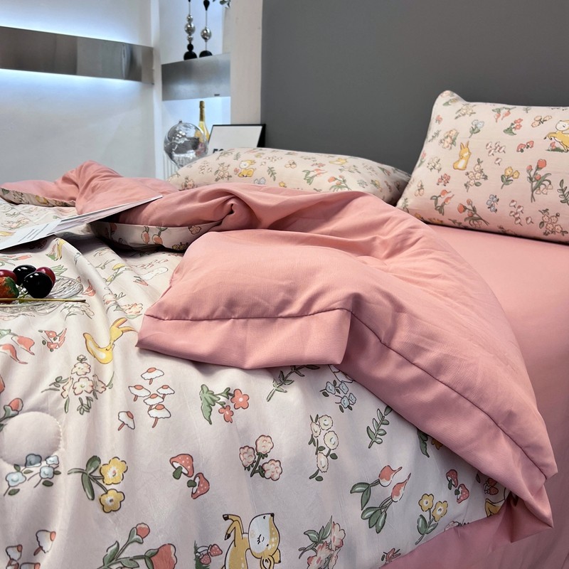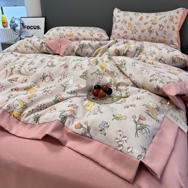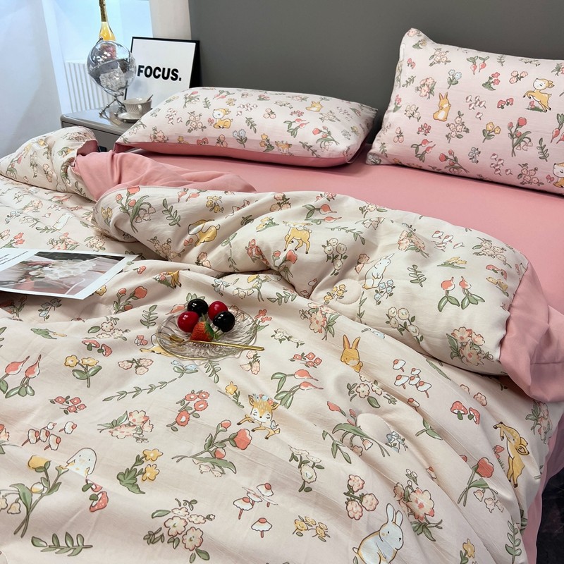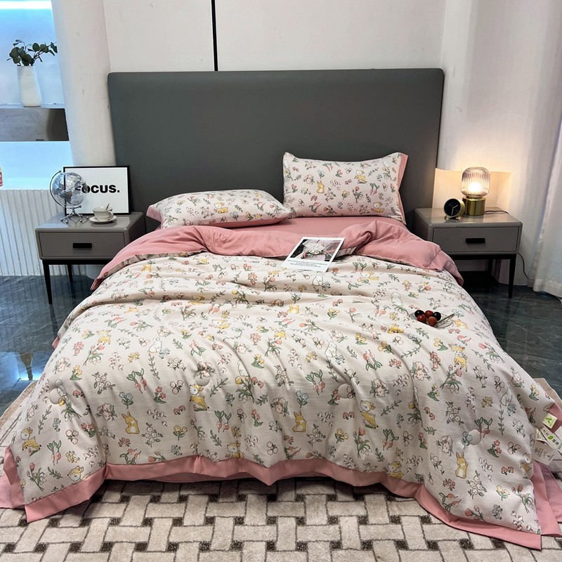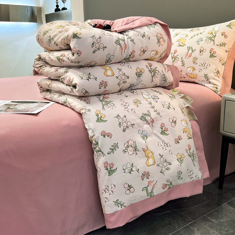 慕尚 2025新款水洗棉麻夏被四件套 花丛兔