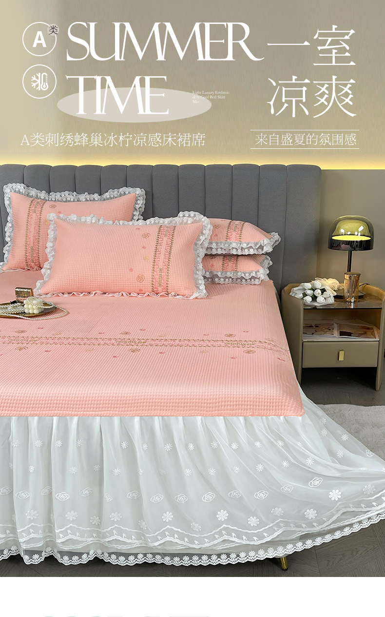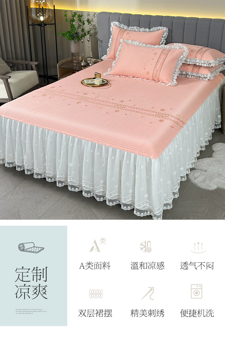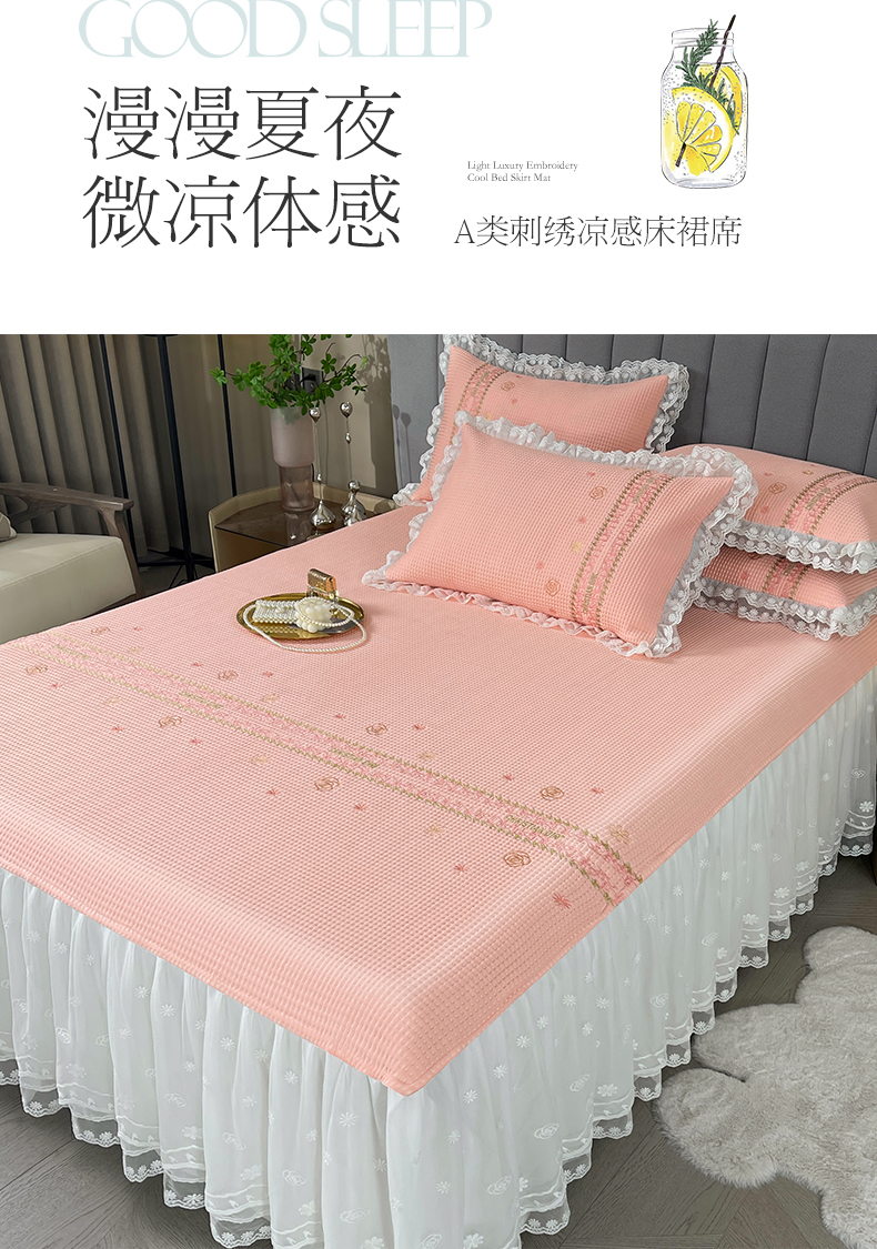 宜凡家纺2024新款A类蜂巢冰柠凉席床裙款三件套 简爱 果粉