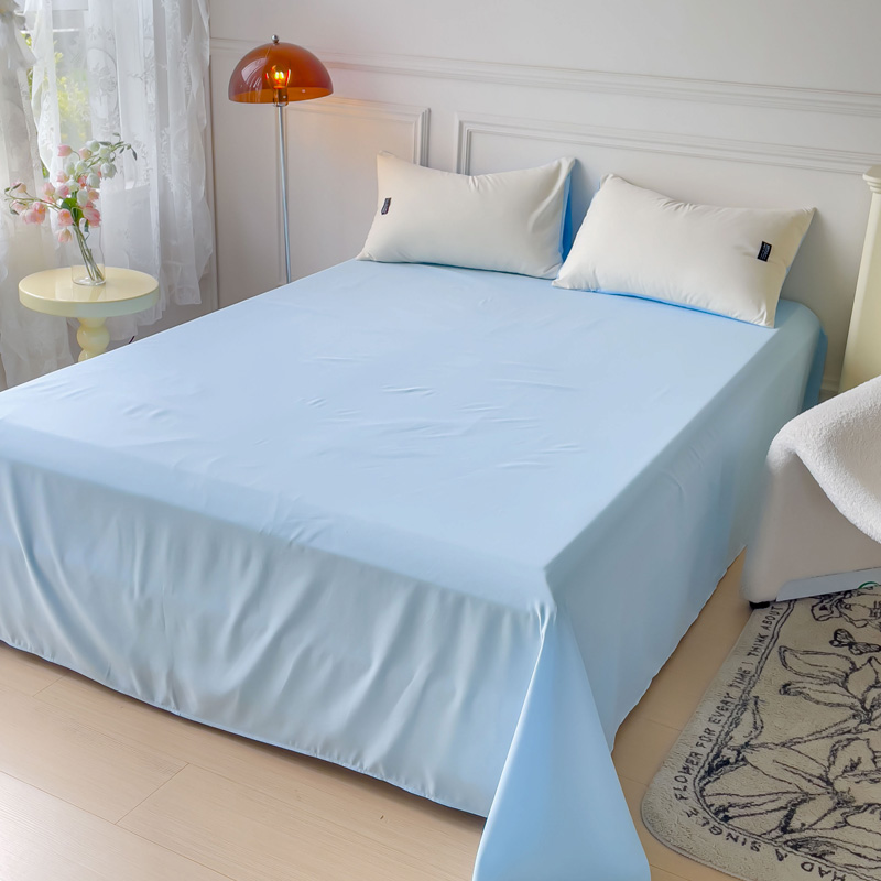 米瑞娜2024新款水洗棉麻双拼纯色床单 奶白+淡蓝床单
