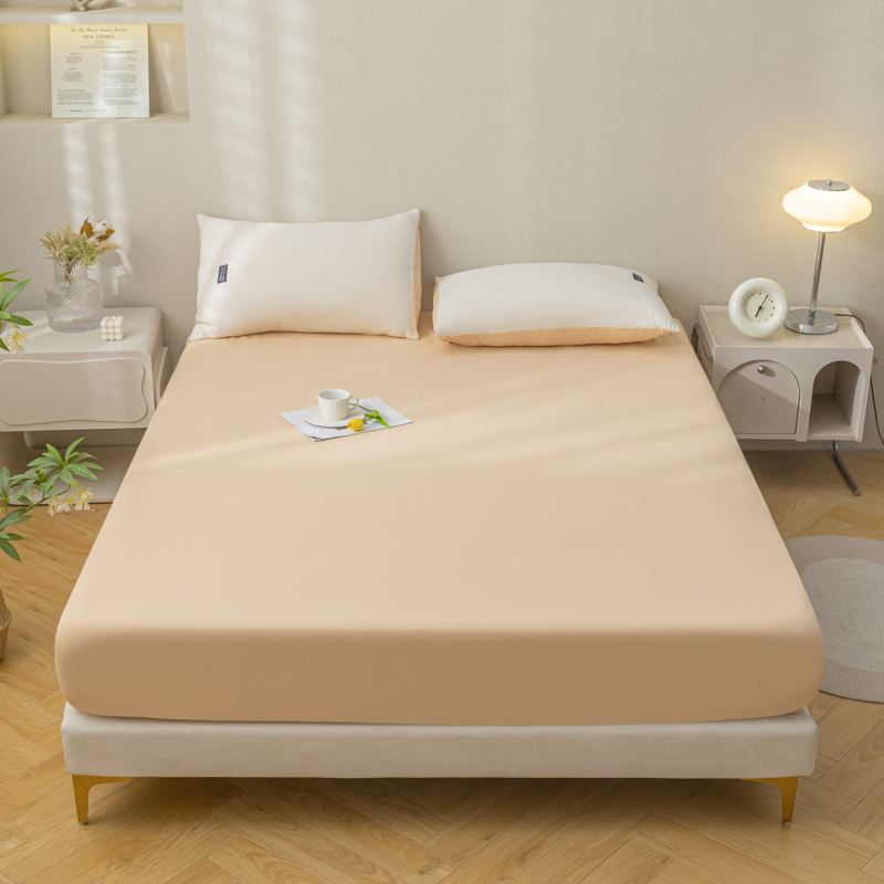 米瑞娜2024新款水洗棉麻双拼纯色单床笠 浅粉