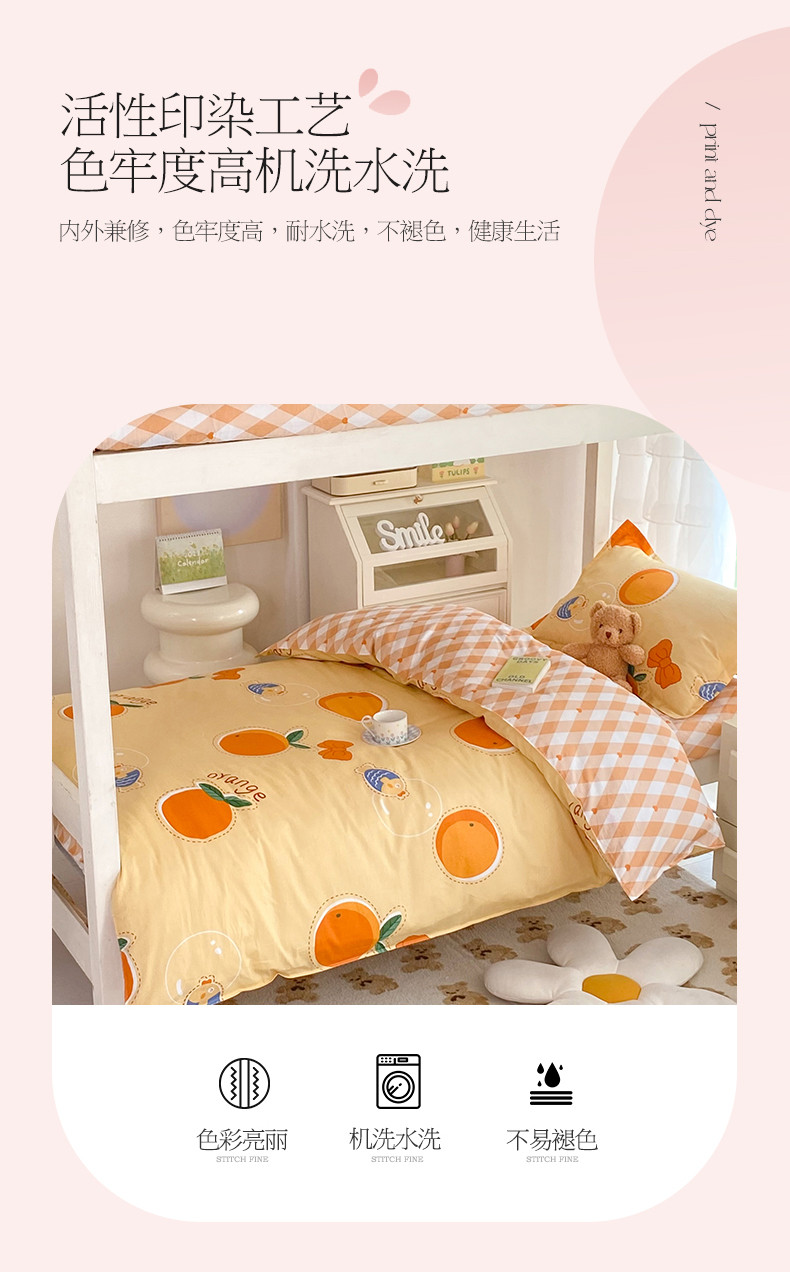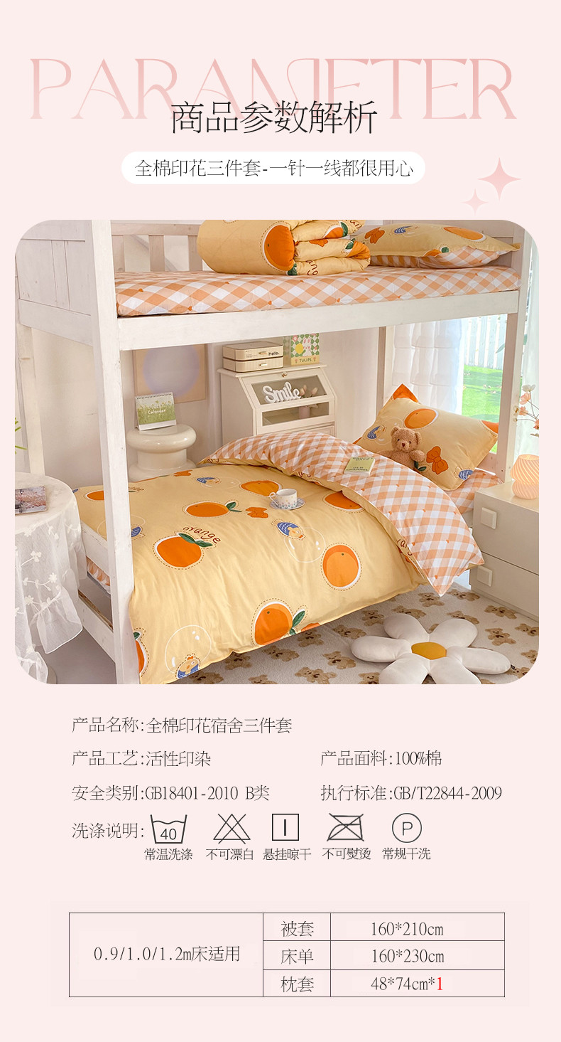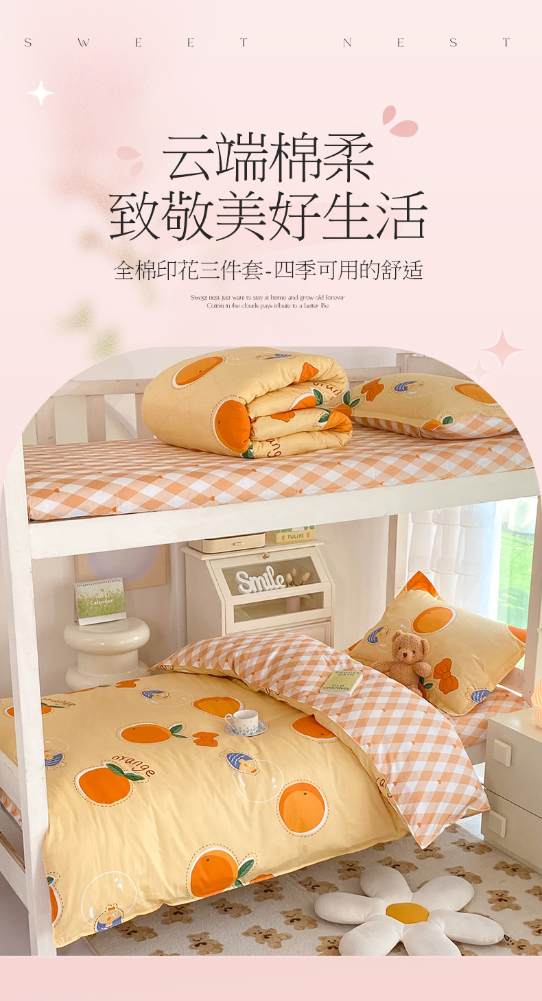 商品名称:多品 2023新款12868全棉宿舍三件套-第二批 甜橙