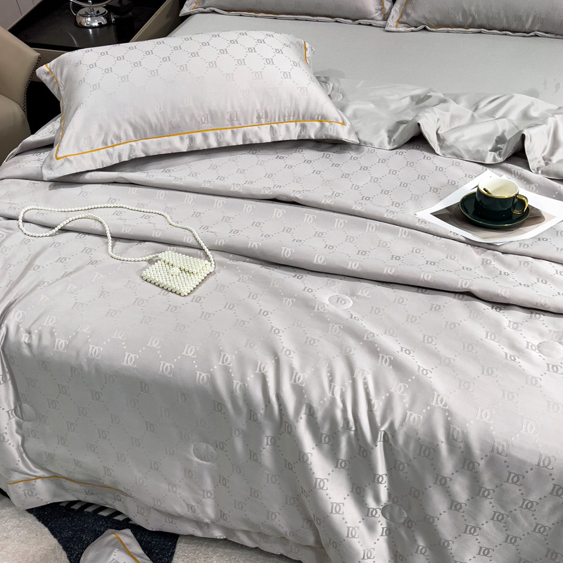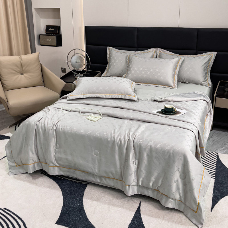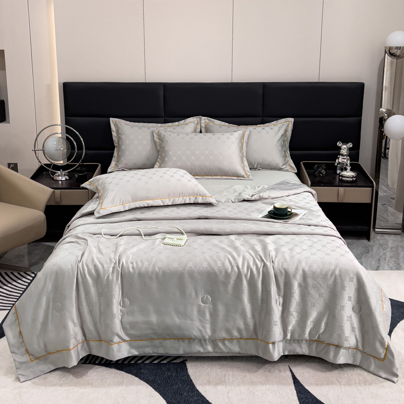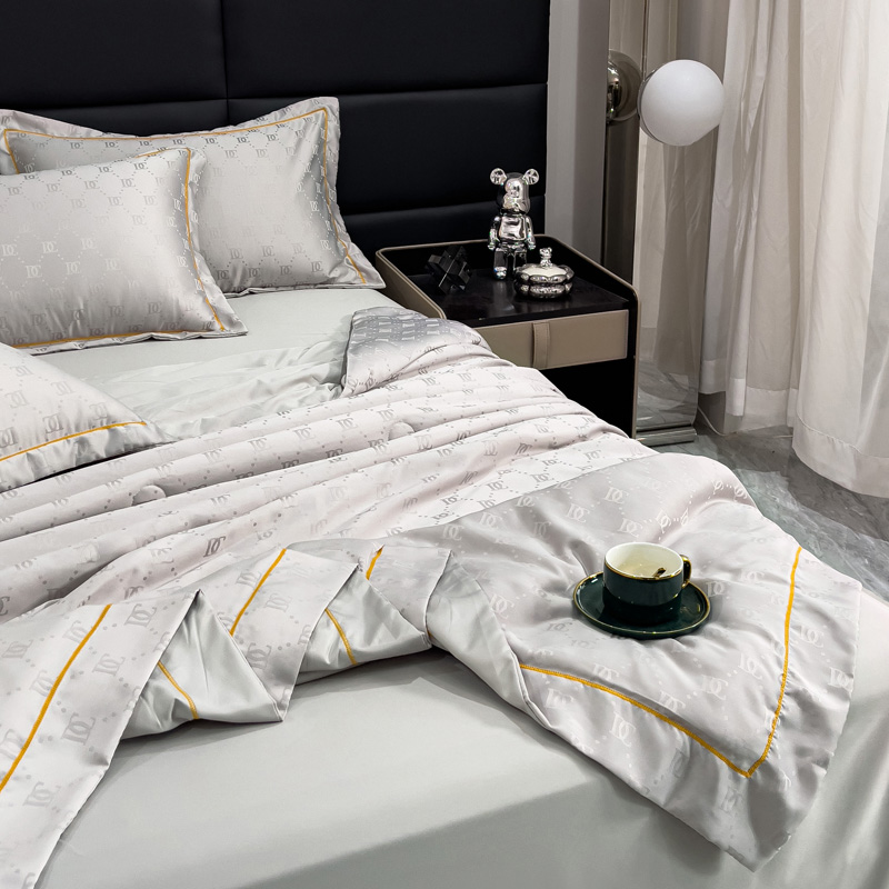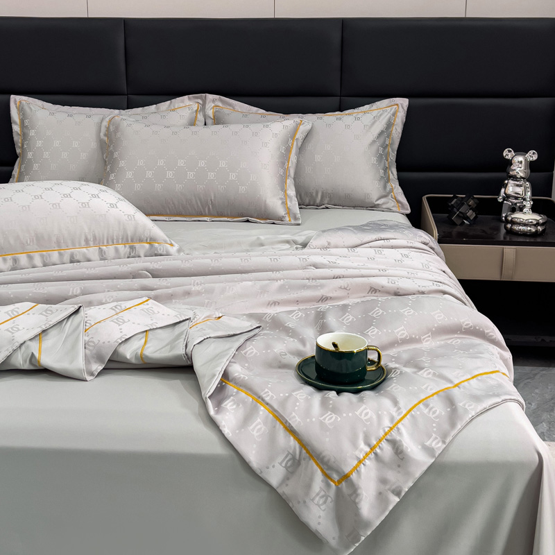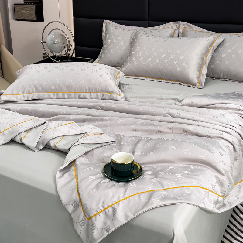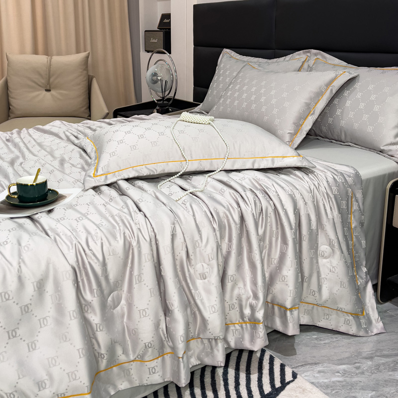 丽卡家纺2023直播60S贡缎提花水洗真丝夏被四件套水洗天丝夏凉被空调被 迪克-亮银灰