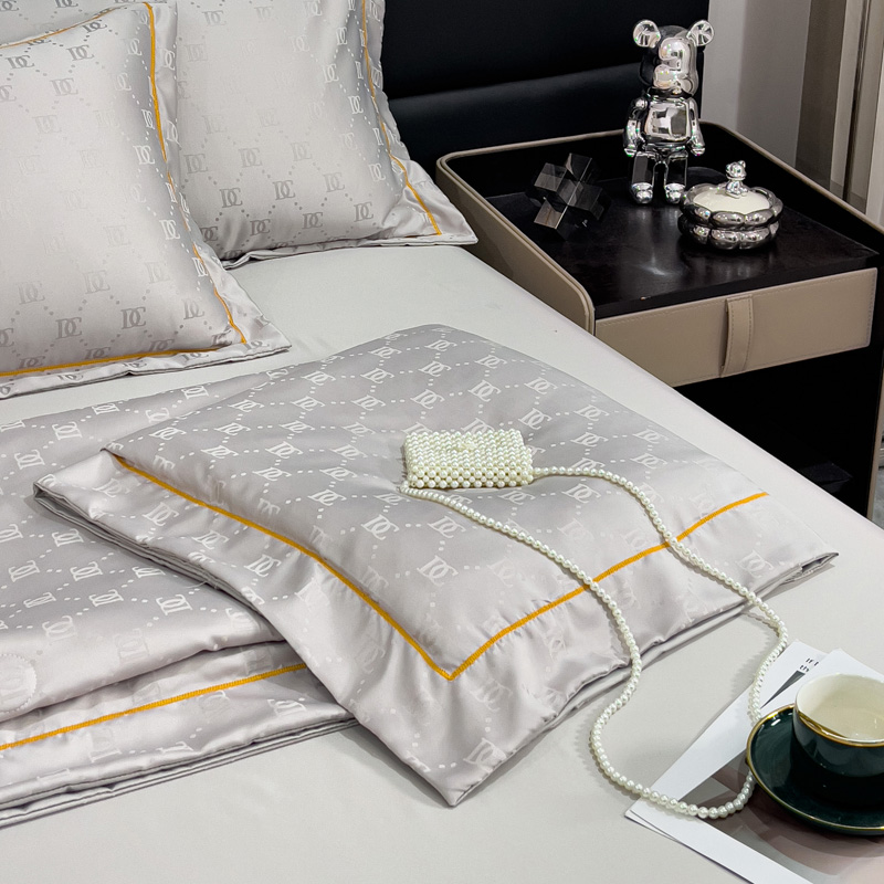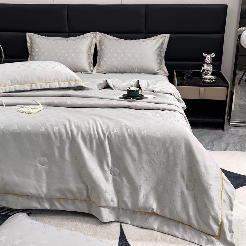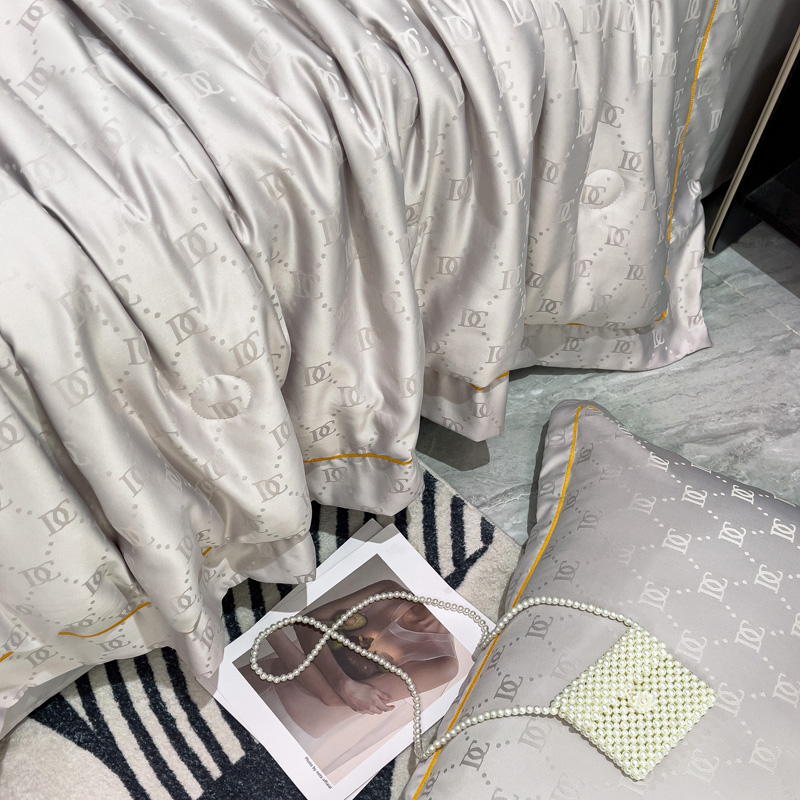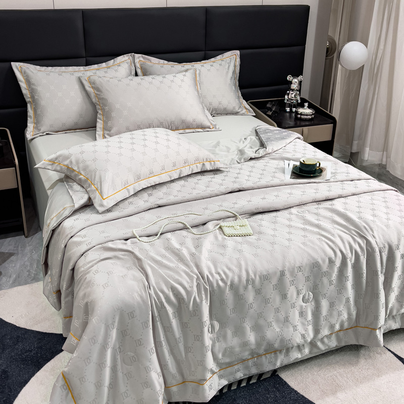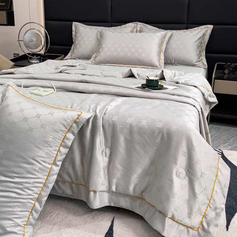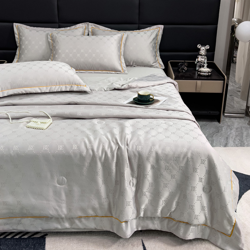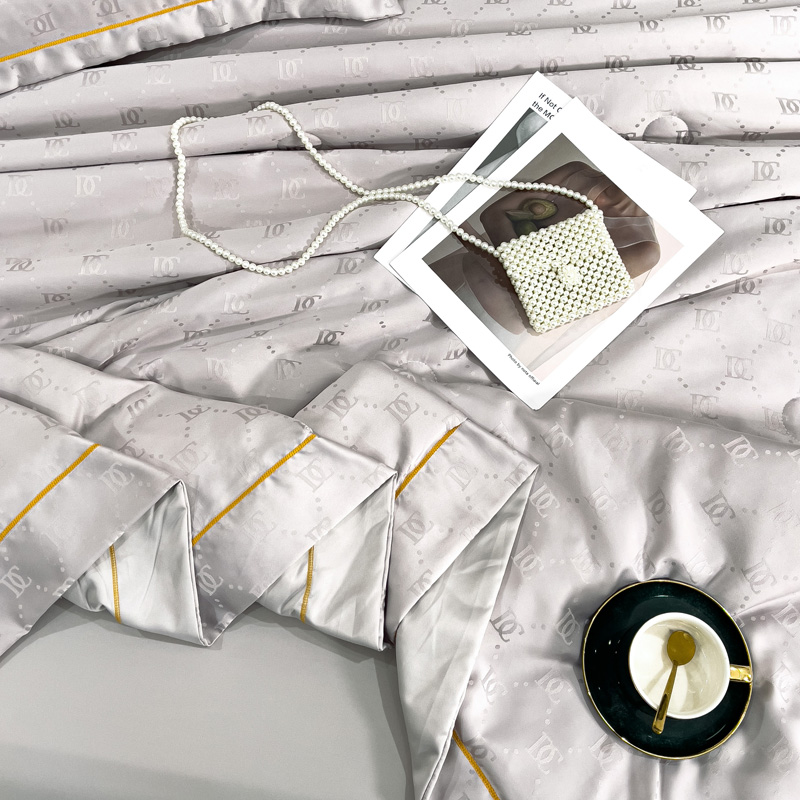 丽卡家纺2023直播60S贡缎提花水洗真丝夏被四件套水洗天丝夏凉被空调被 迪克-亮银灰