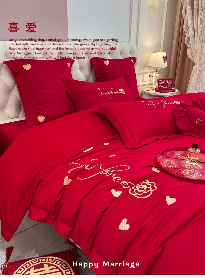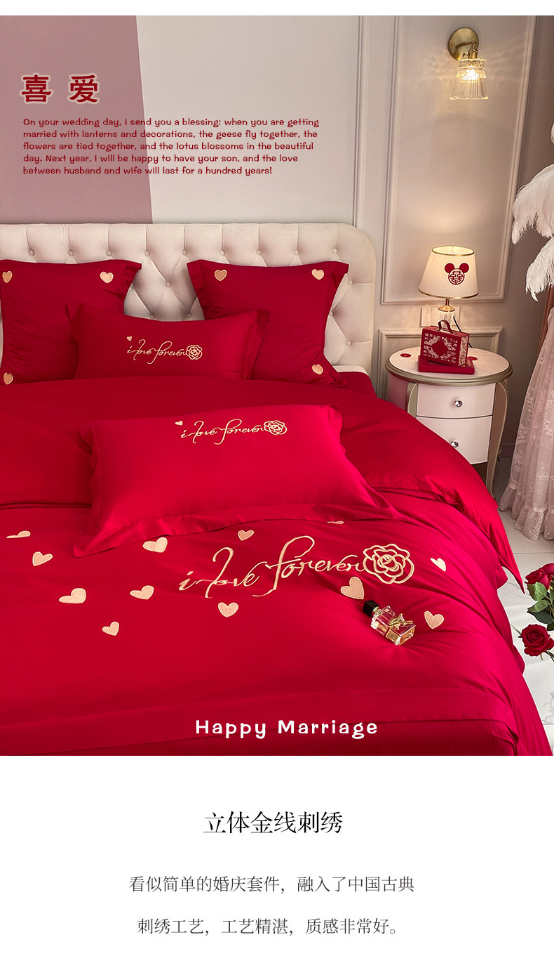 当前位置: 91家纺网 > 商品网购 > 床品套件 > 四件套 > 婚庆四件套 > 新款亲肤舒适时尚婚庆四件套系列 喜爱
