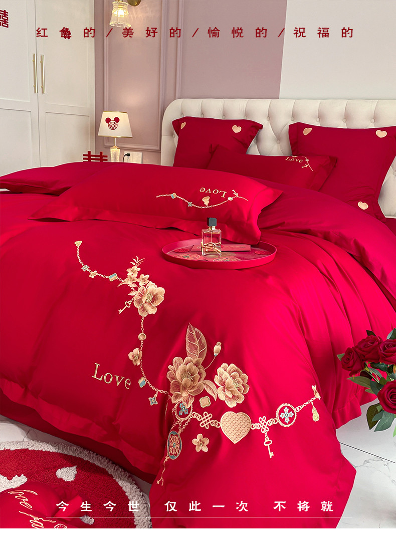 当前位置: 91家纺网 > 商品网购 > 床品套件 > 四件套 > 婚庆四件套 > 新款亲肤舒适时尚婚庆四件套系列 浪漫相随
