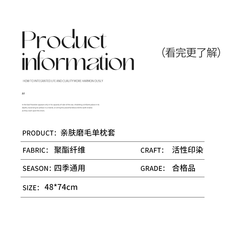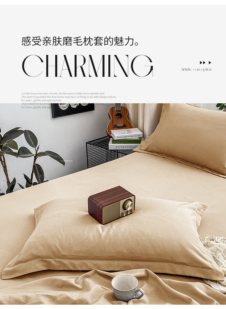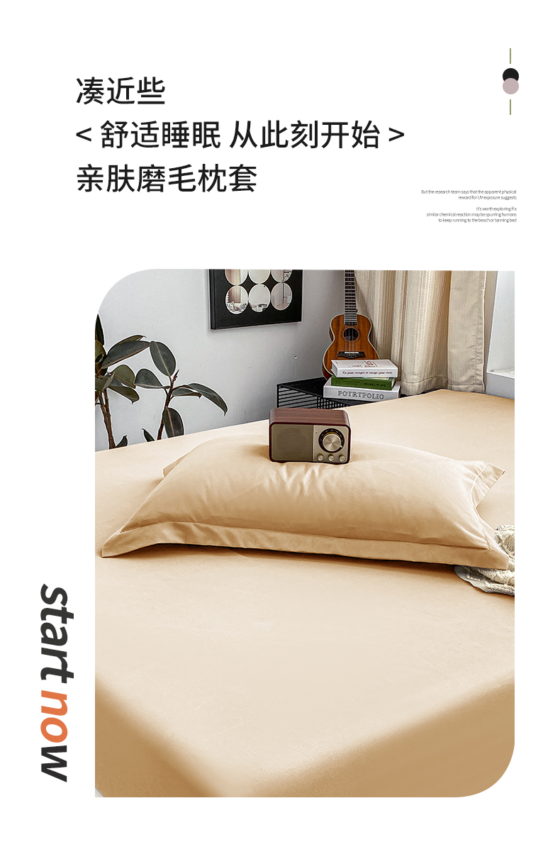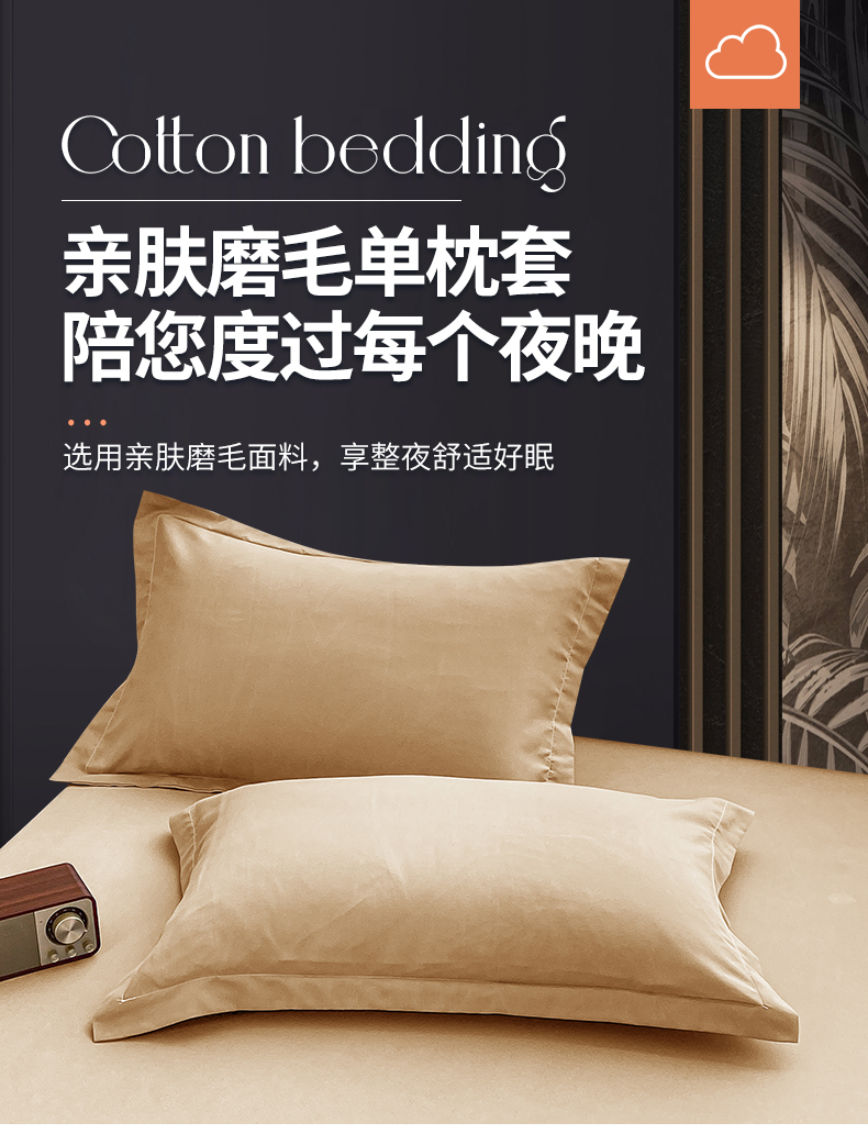 商品名称:恬澳家纺 2024新款亲肤磨毛单枕套系列-实拍风 浅卡其