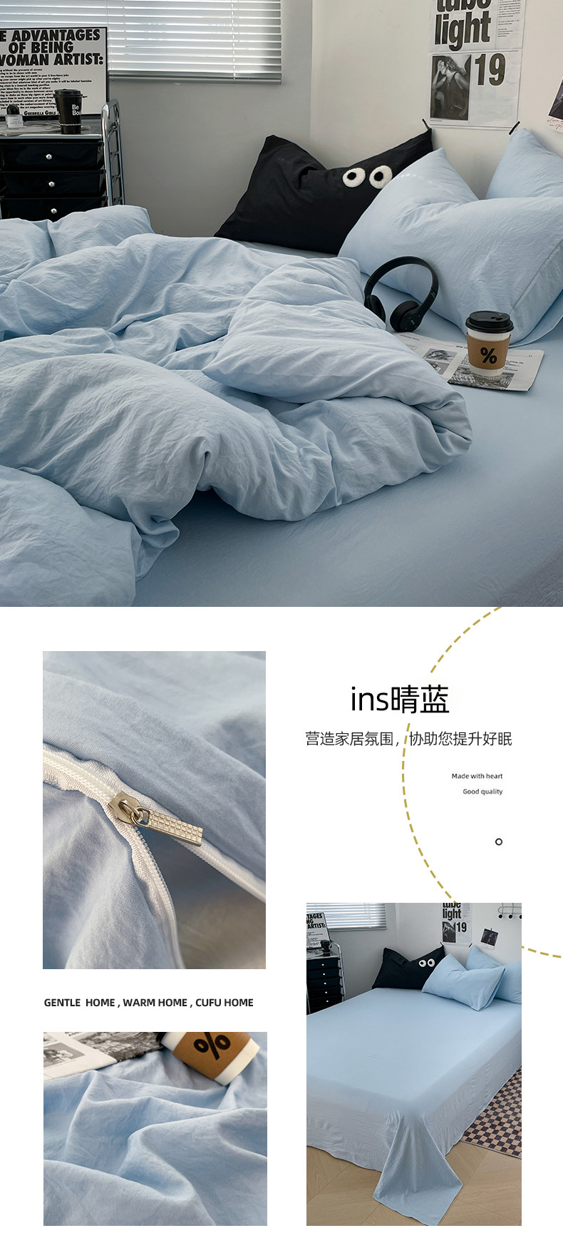 商品名称:贝拉梦 2023新款ins风超柔亲肤磨毛褶皱水洗棉单被套 ins晴蓝