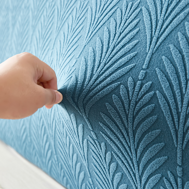 商品名称:逐日沙发套 2023新款纯色提花床头罩叶恋系列 叶恋-蓝灰色