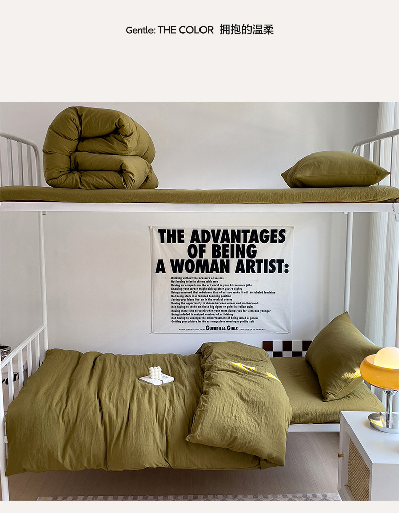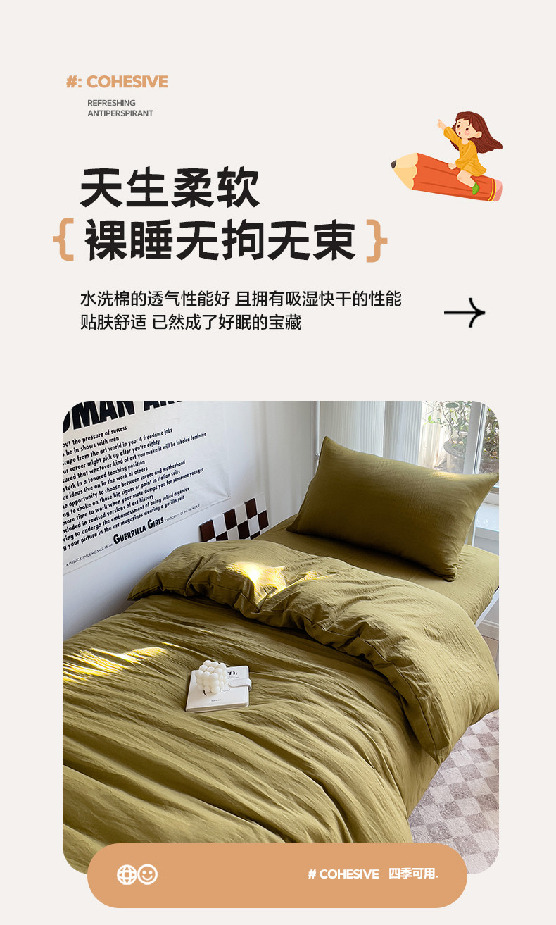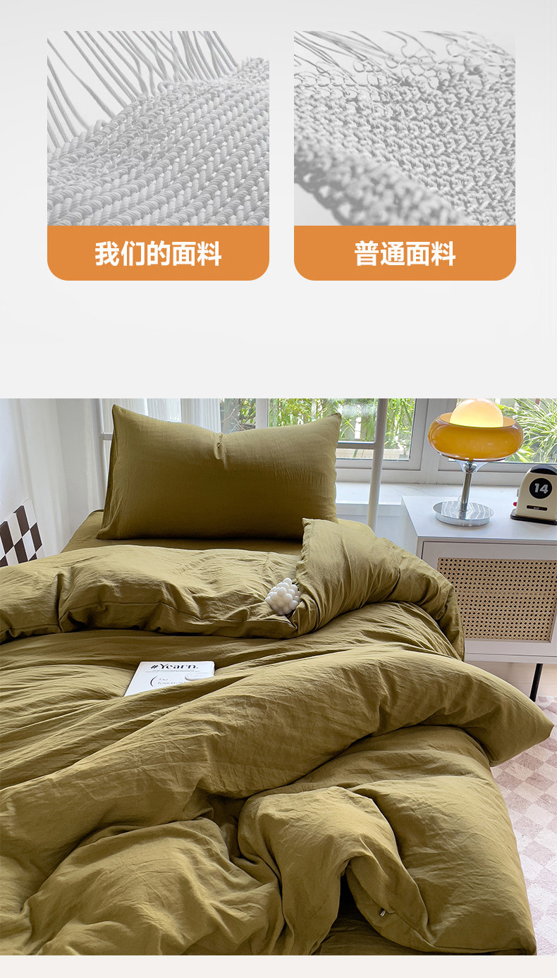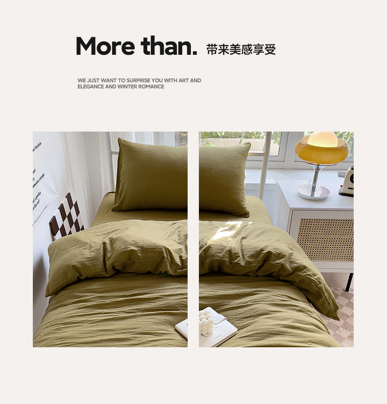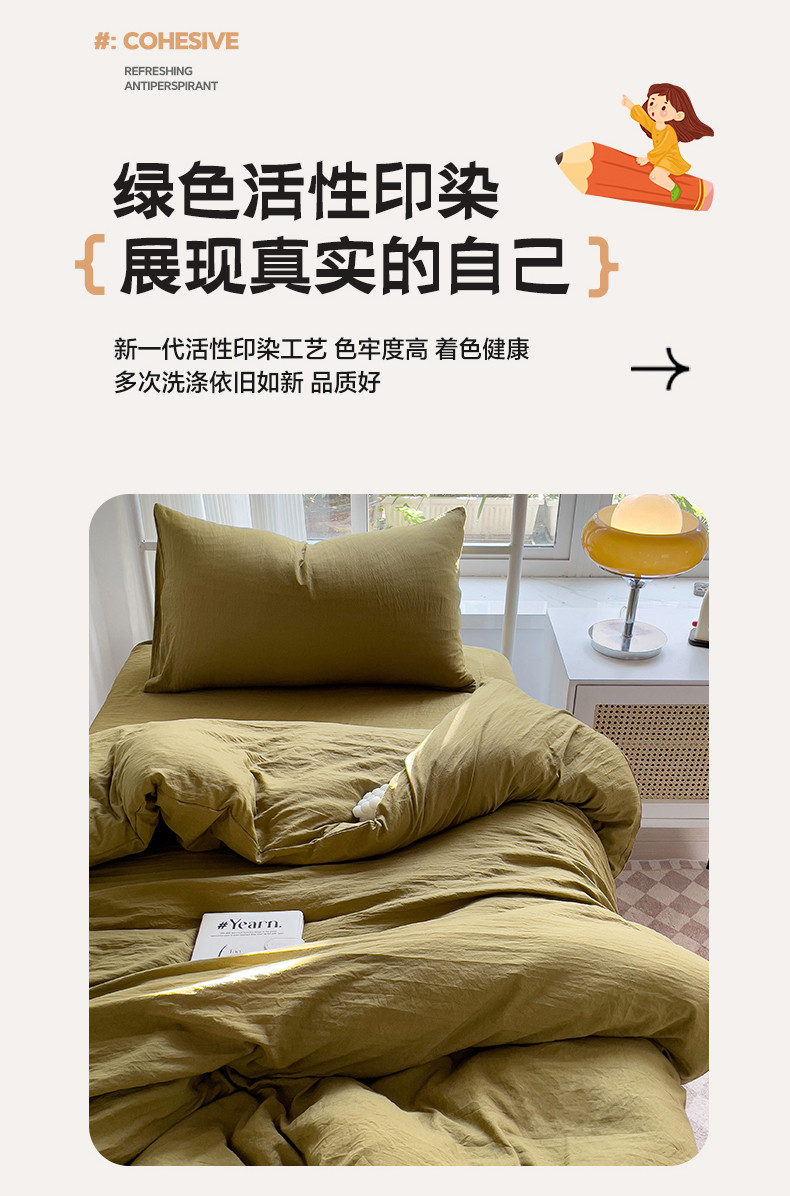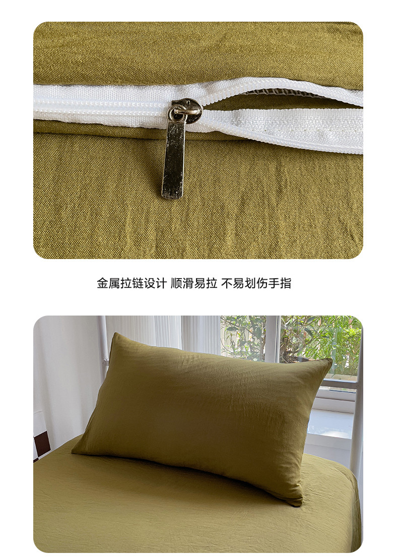 (总)水墨江南 2025新款亲肤磨毛水洗棉纯色四件套,翡绿,暗夜绿,碧蓝,橄榄绿,墨灰,浅灰深灰,雅白,藻绿米黄,中驼