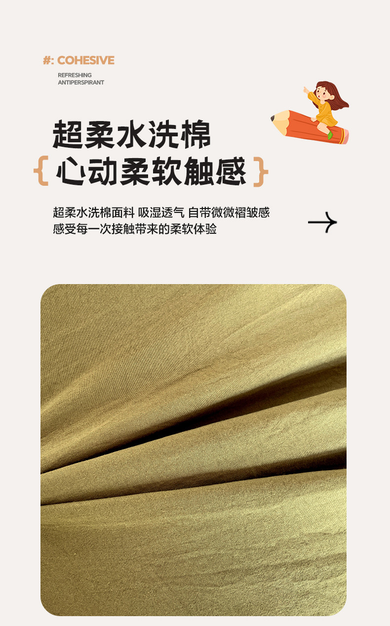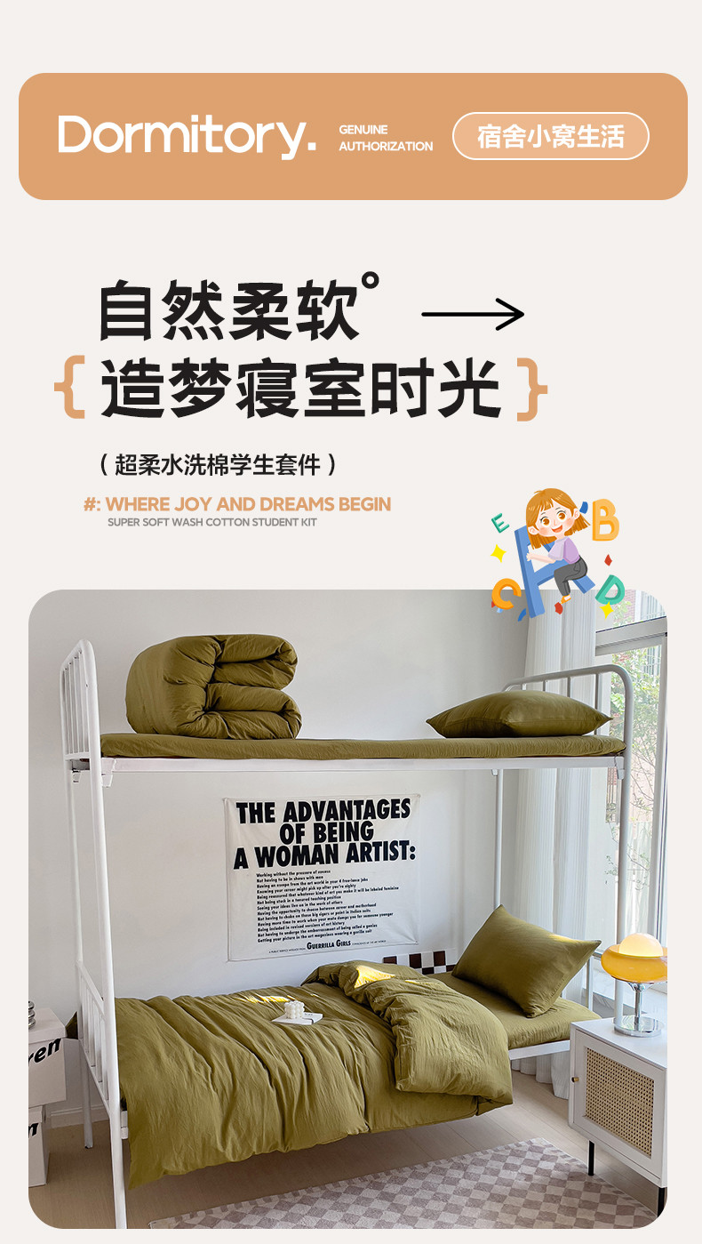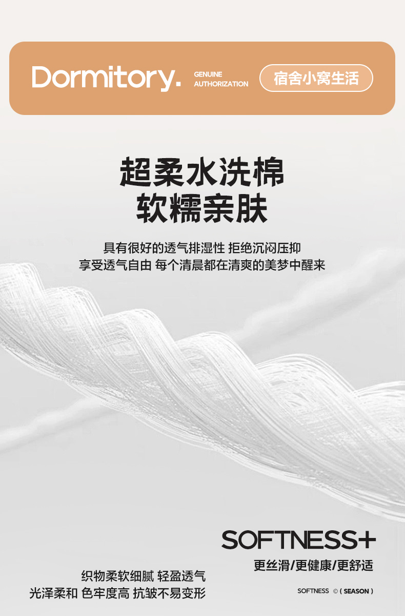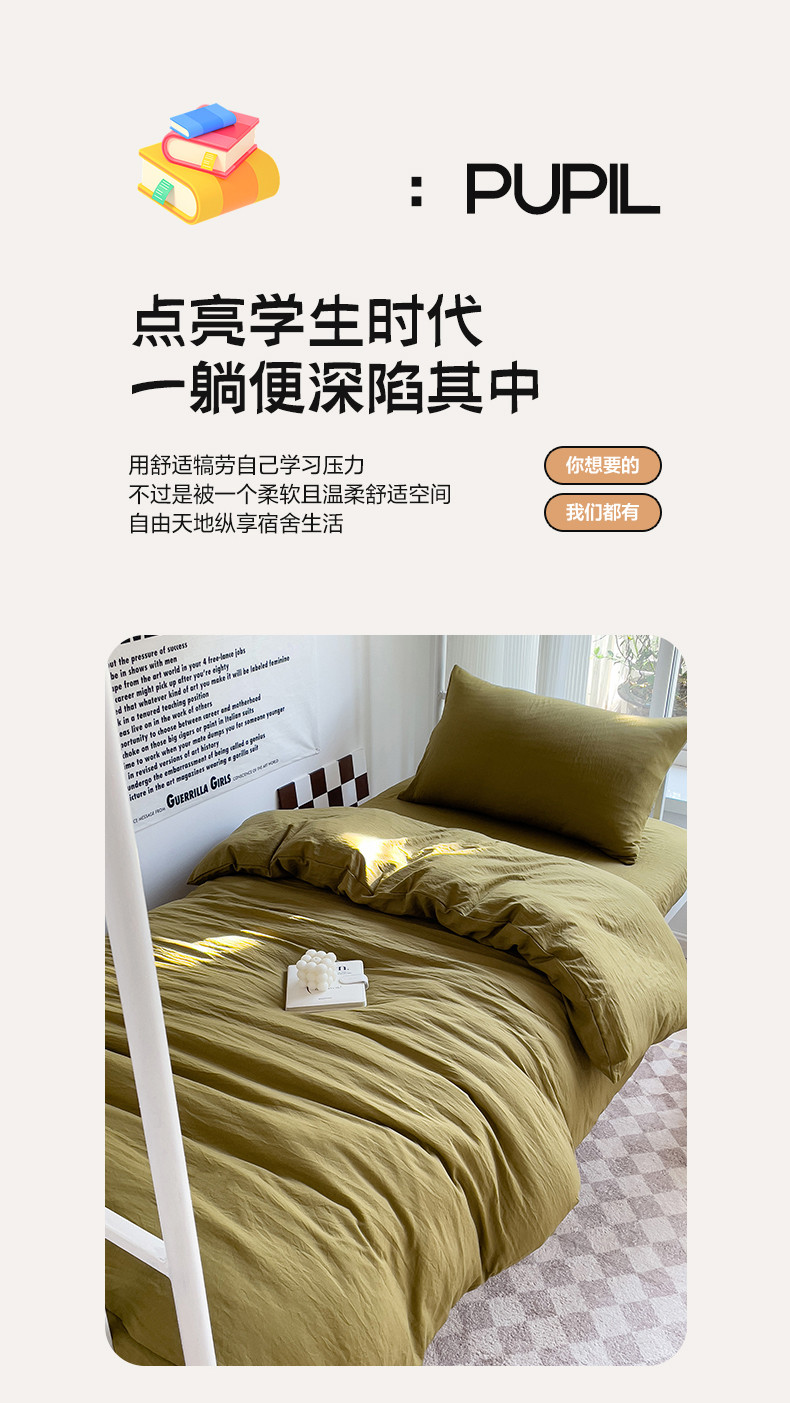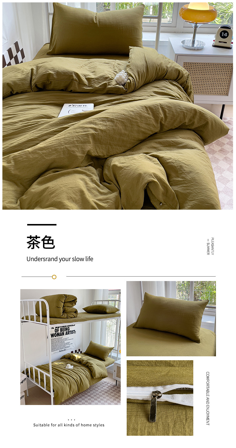商品名称:水墨江南 2023新款超柔水洗棉褶皱款学生床三件套 茶色