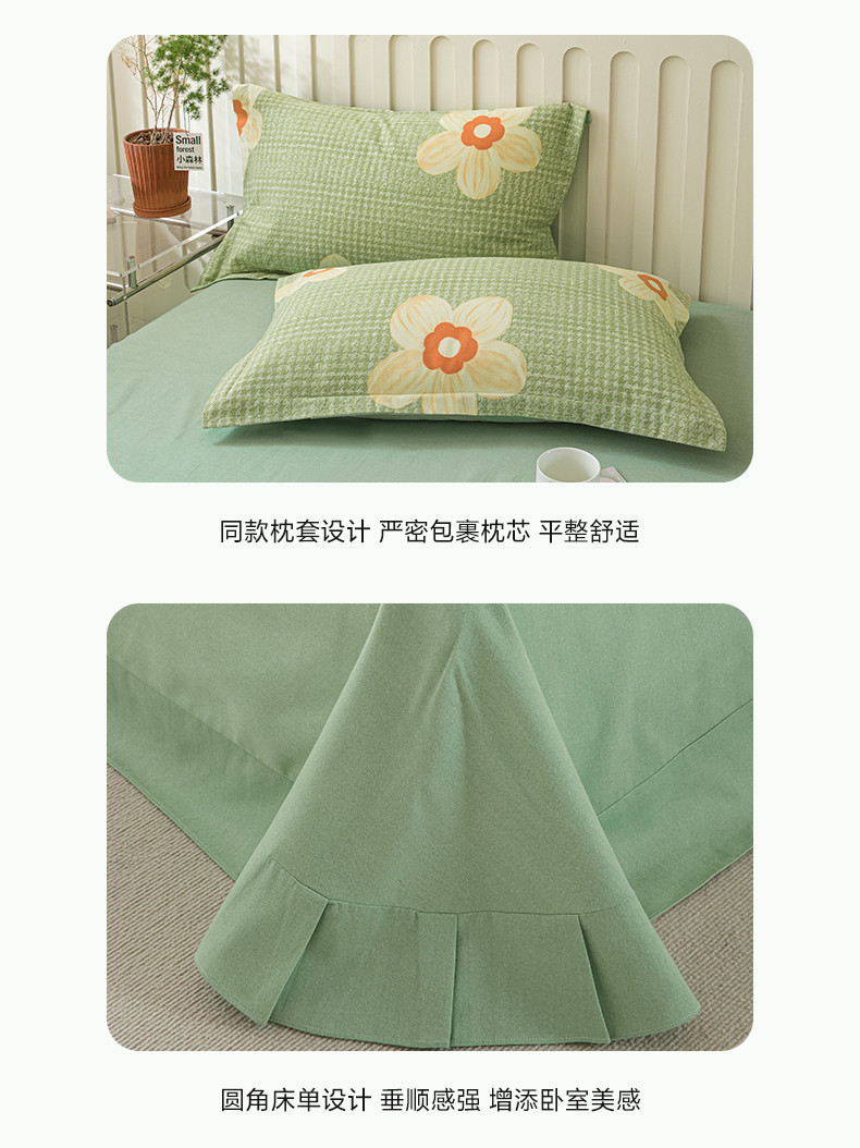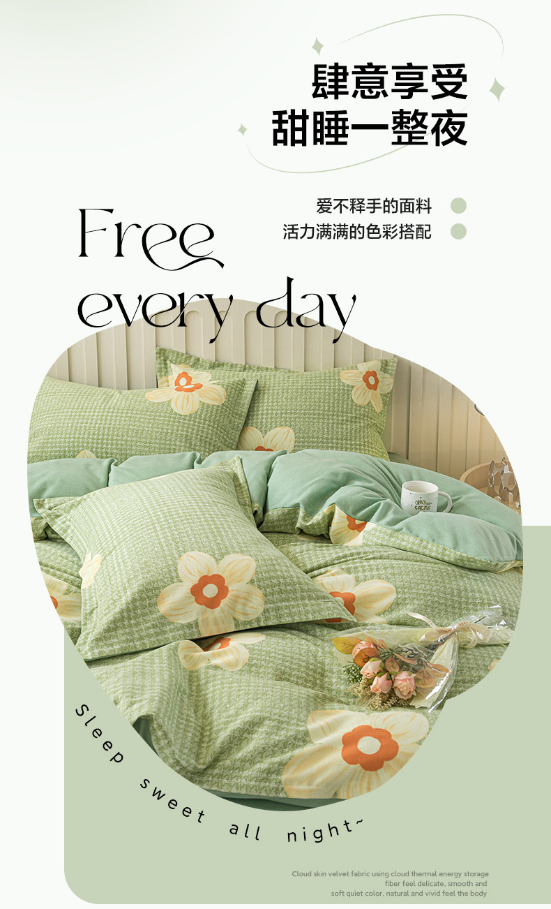 卡巴伦家纺 2023新款磨毛小清新印花系列四件套 花曼庭