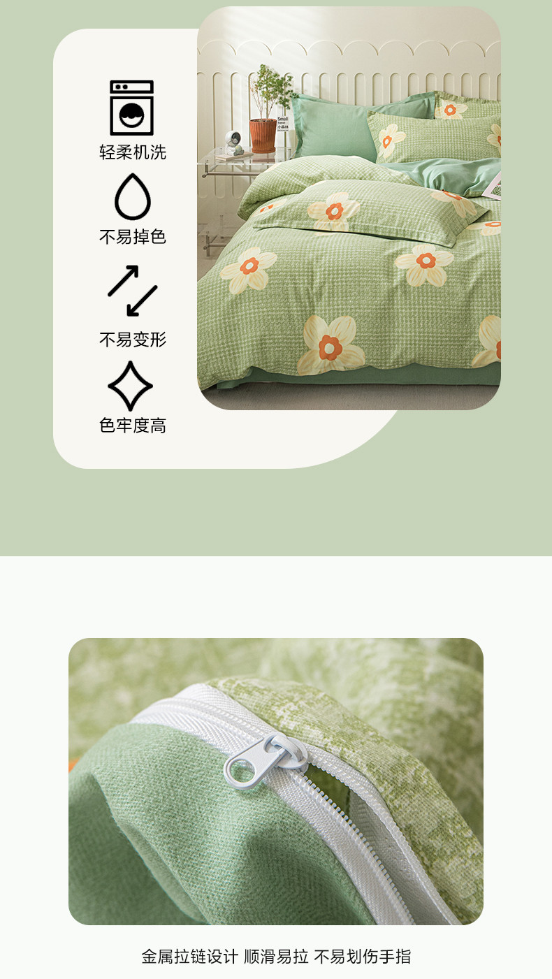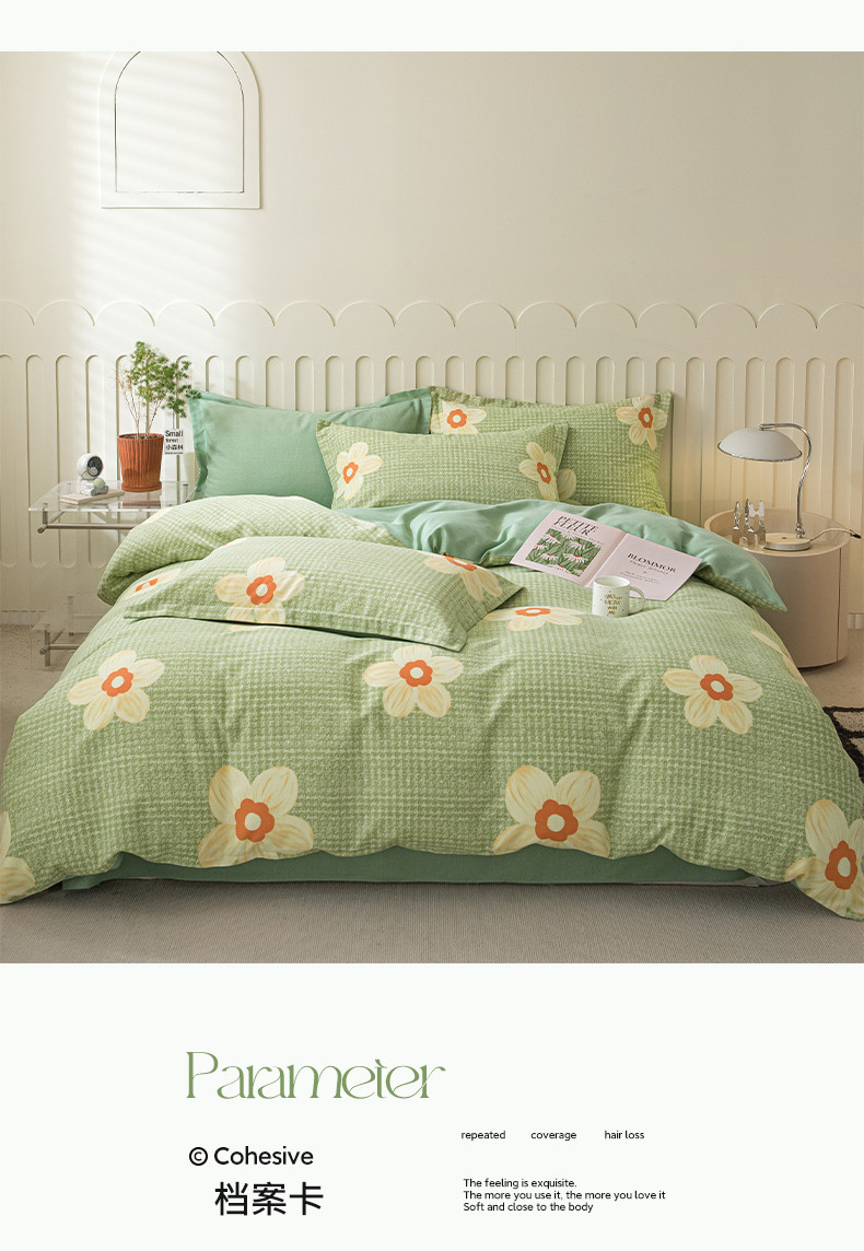 商品名称:卡巴伦家纺 2023新款磨毛小清新印花系列四件套 花曼庭