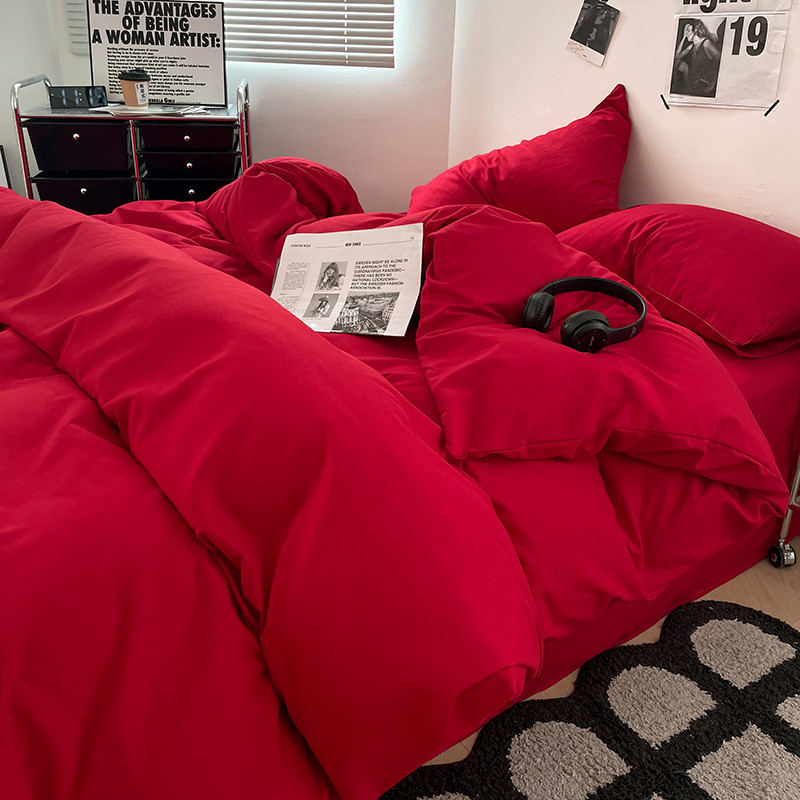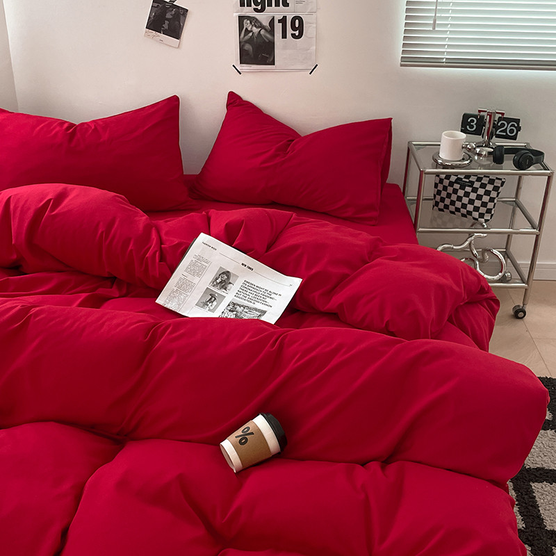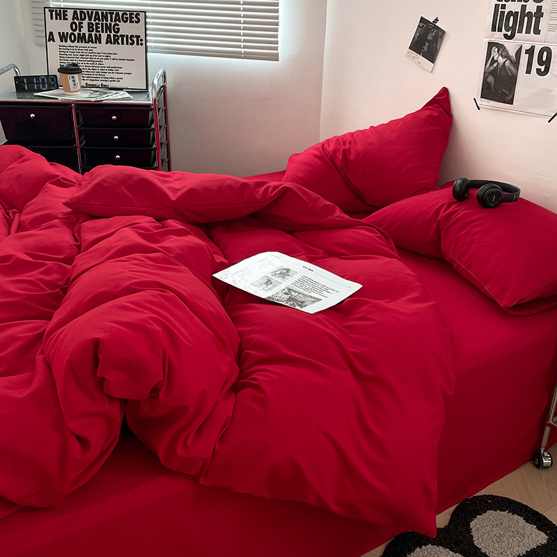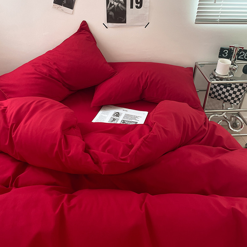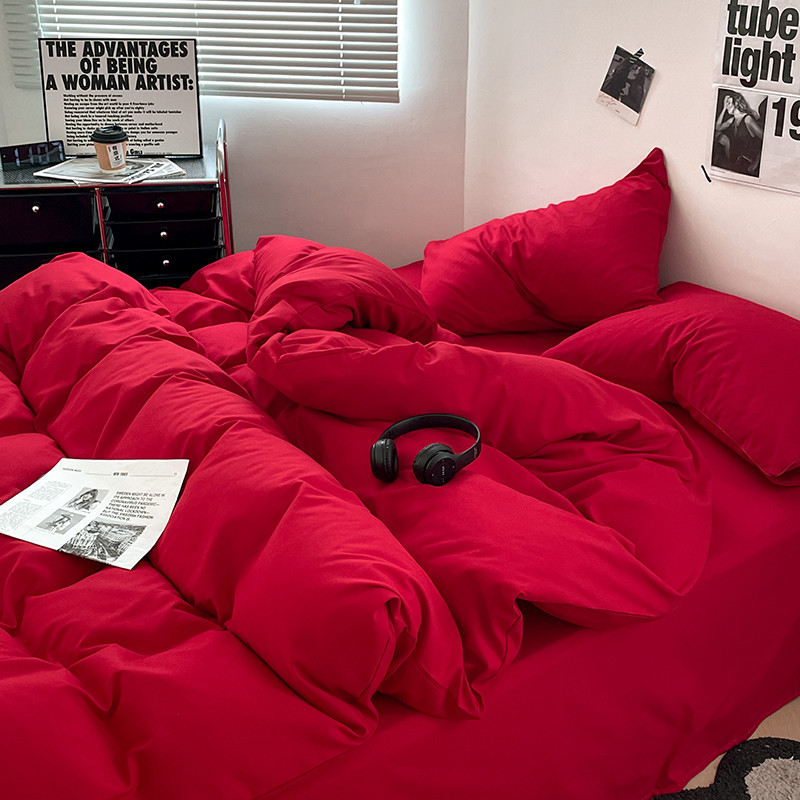 蓝淋家纺 2023新款双拼水洗棉高级感亲肤四件套/三件套 大红