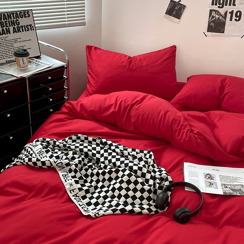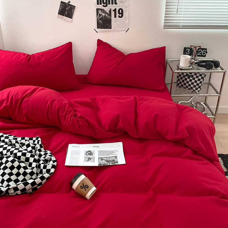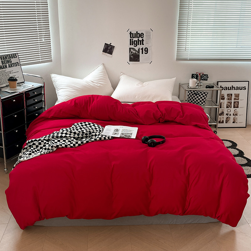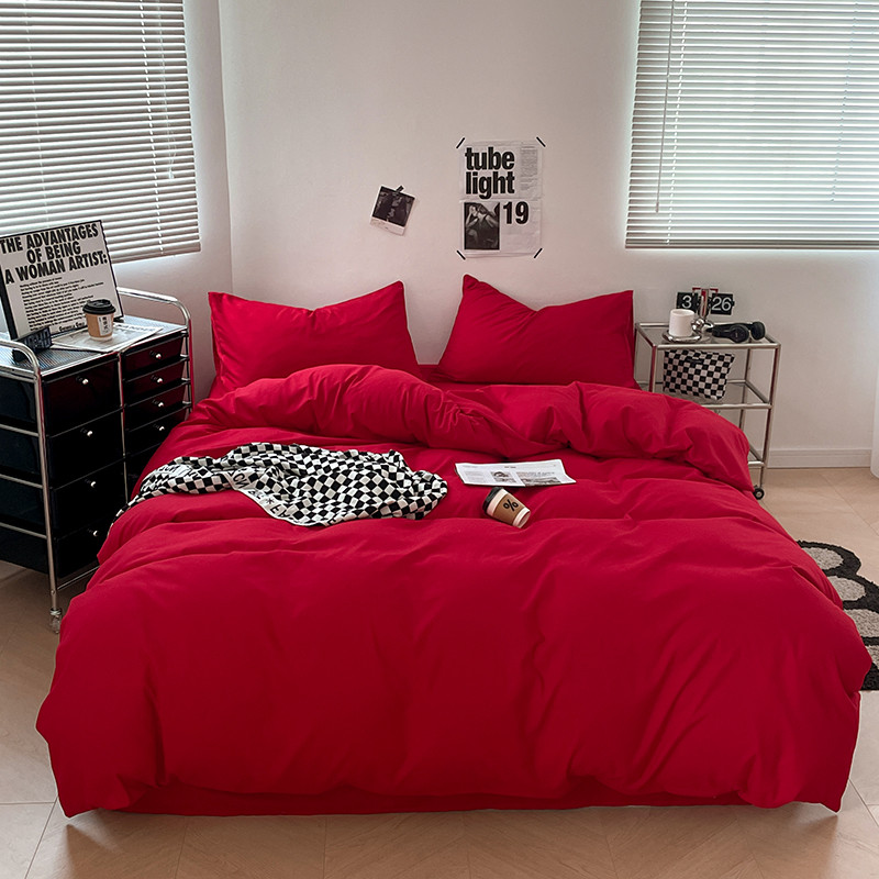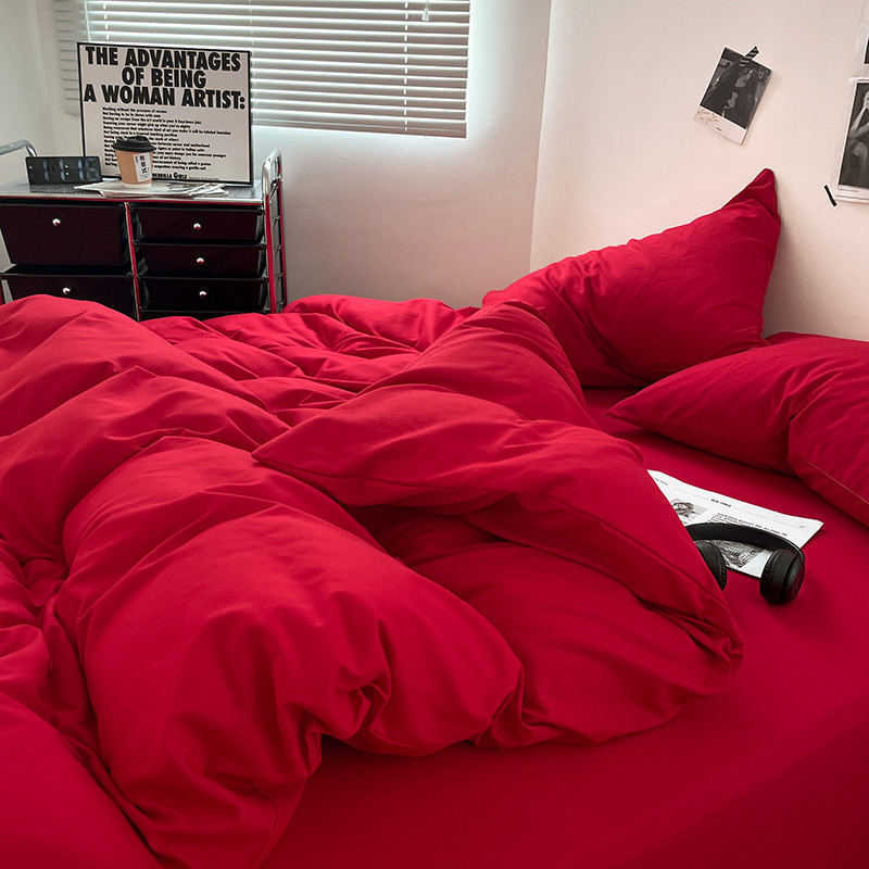蓝淋家纺 2023新款双拼水洗棉高级感亲肤四件套/三件套 大红