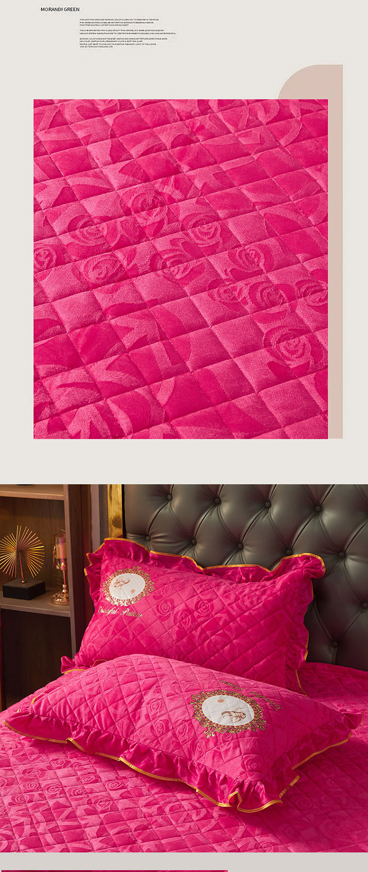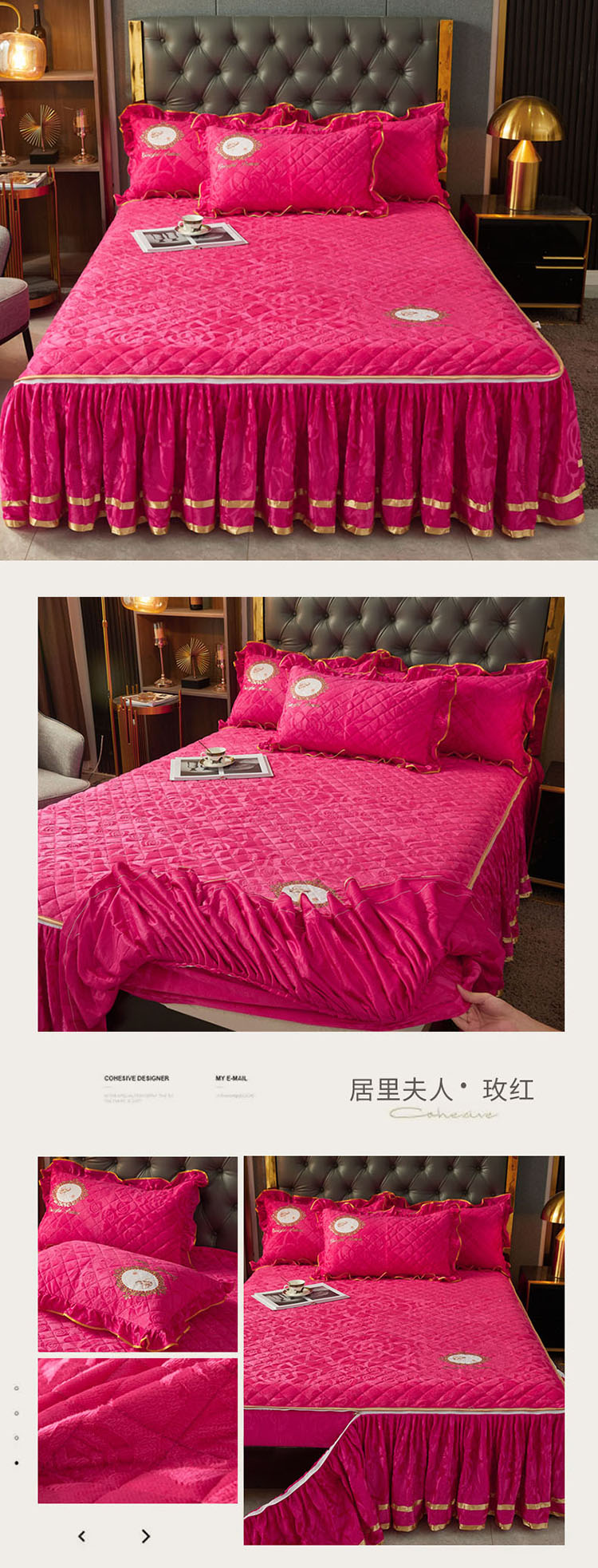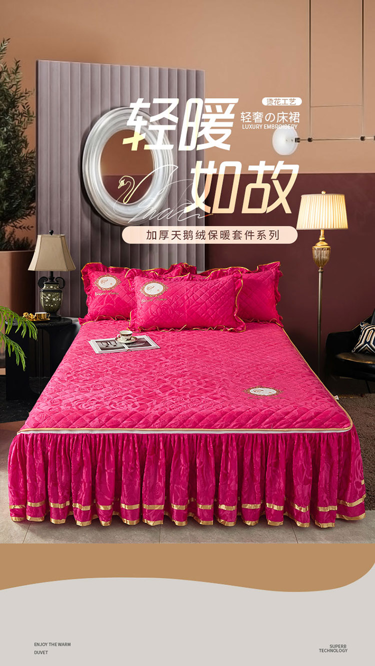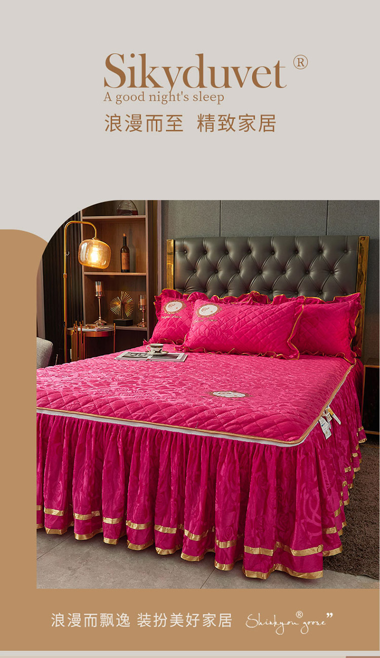 恋尚 新款大豆蛋白棉天鹅绒夹棉床笠加床裙可脱卸床裙 居里夫人-玫红