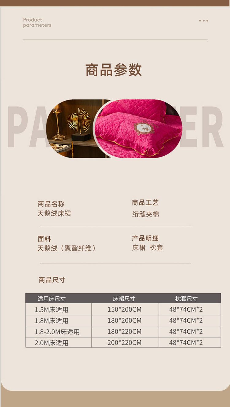 商品名称:恋尚 新款大豆蛋白棉天鹅绒夹棉床笠加床裙可脱卸床裙 居里夫人-玫红