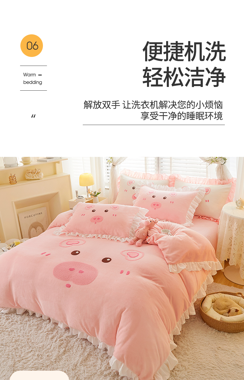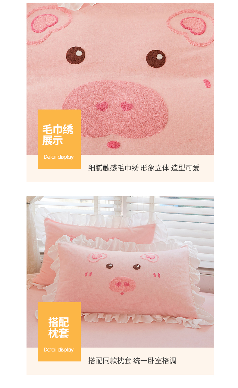 当前位置: 91家纺网 > 商品网购 > 床品套件 > 四件套 > 牛奶绒四件套 > 泉欣家纺 2024新品高克重牛奶绒卡通毛巾绣粉猪猪四件套 可爱猪 粉玉