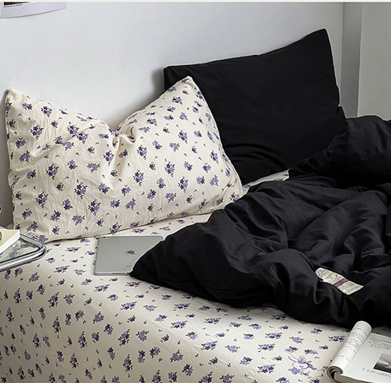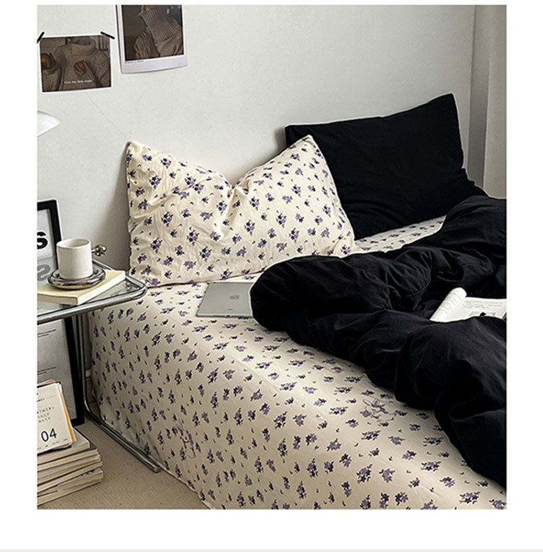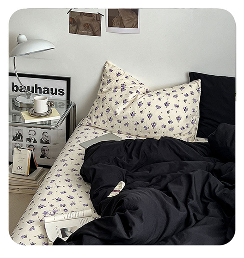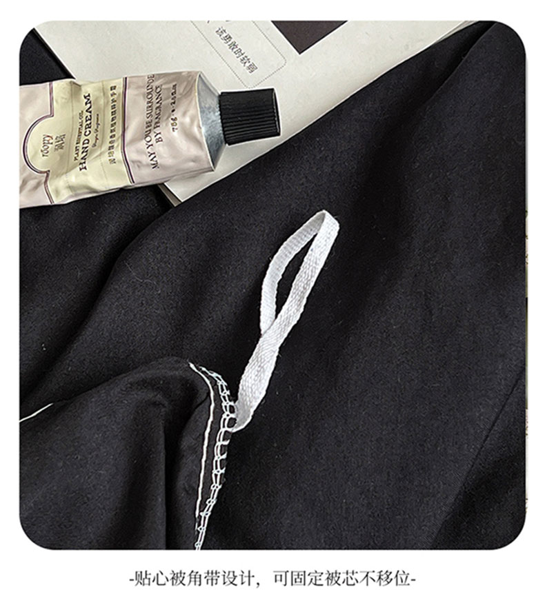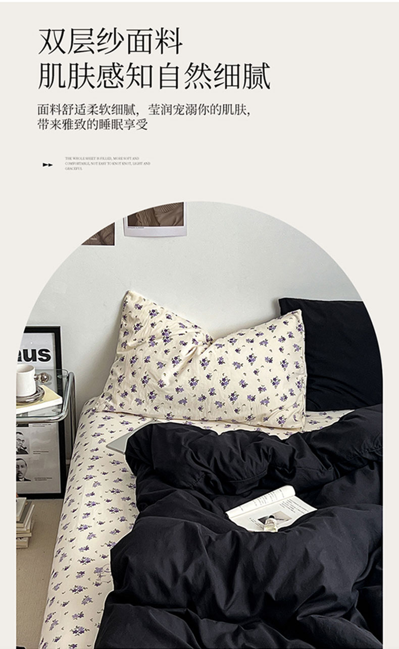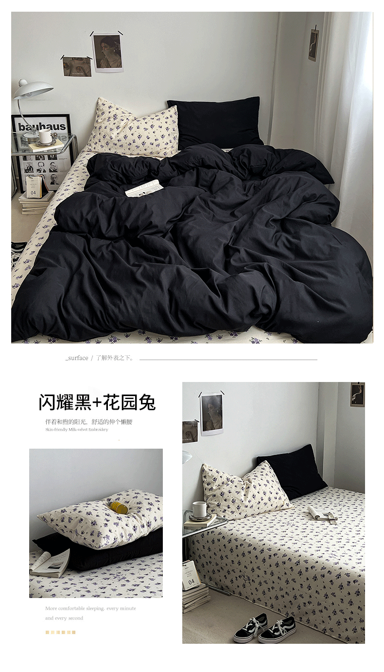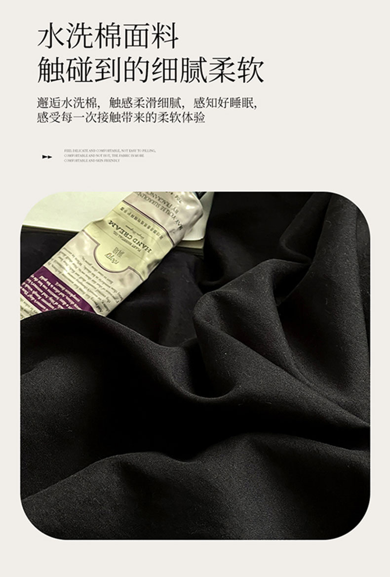 商品名称:梦嘉居 2023新款水洗棉双层纱亲肤舒适单床笠 闪耀黑+花园兔