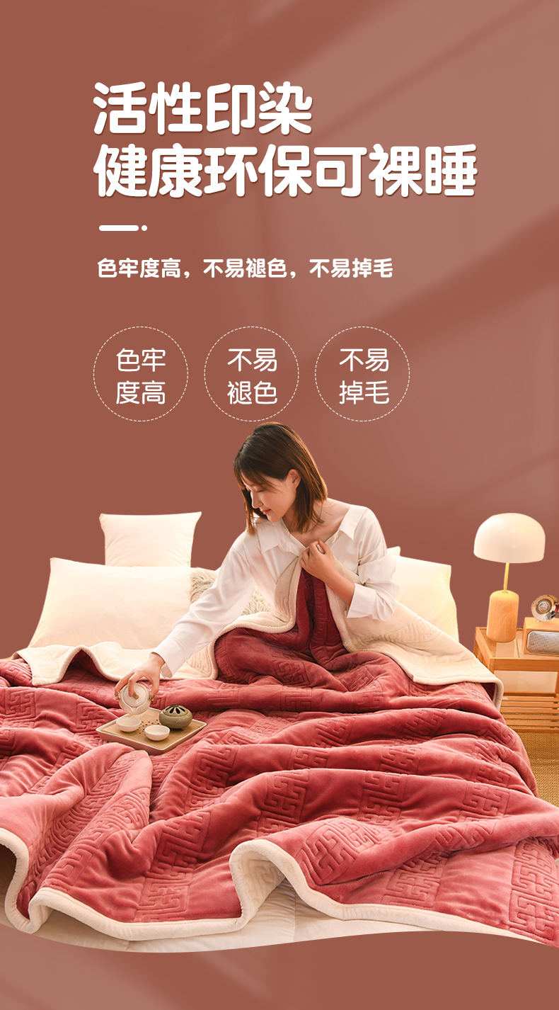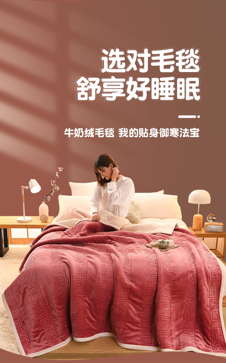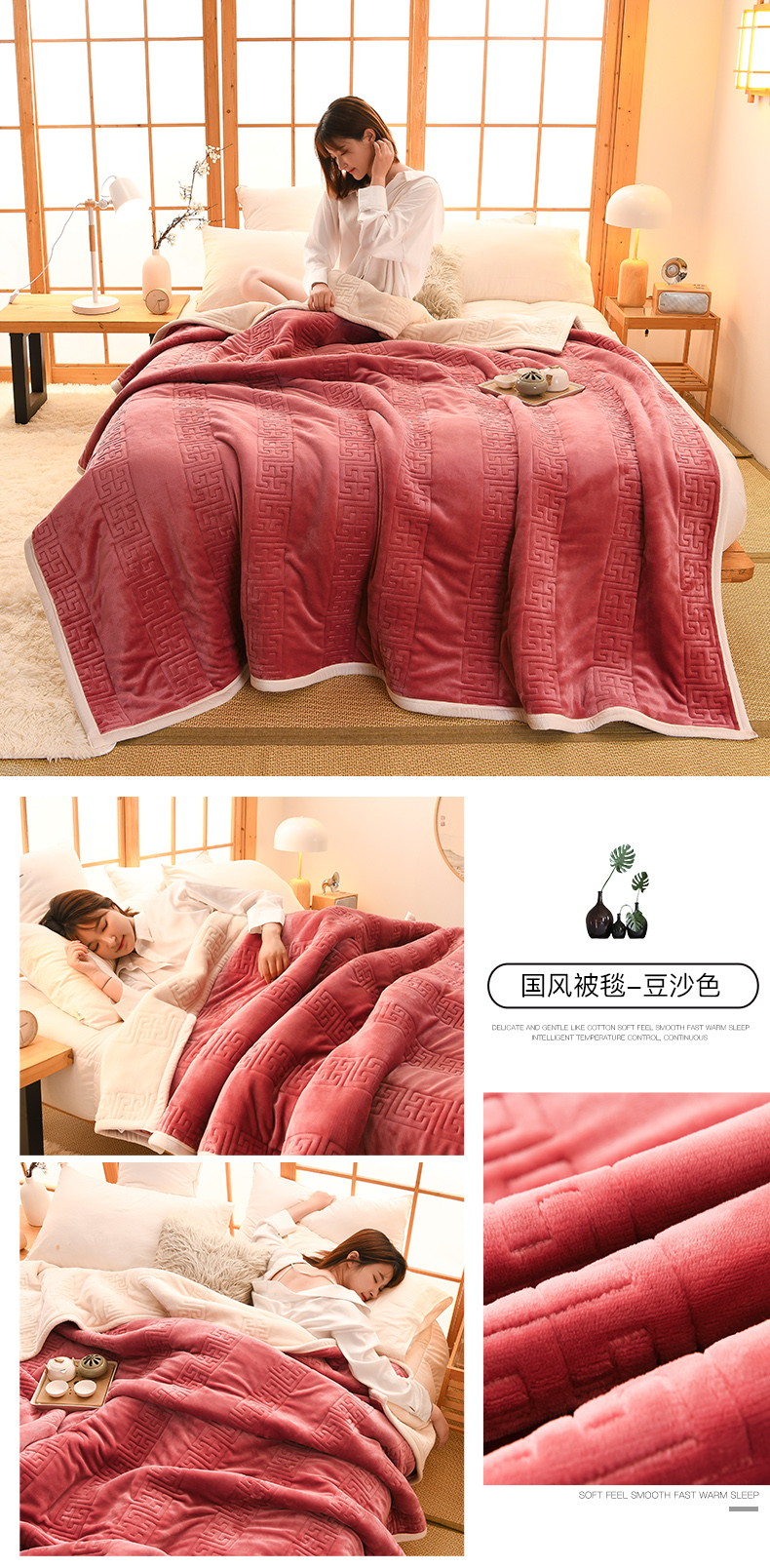 商品名称:2023新款【加厚款】国风被毯 豆沙