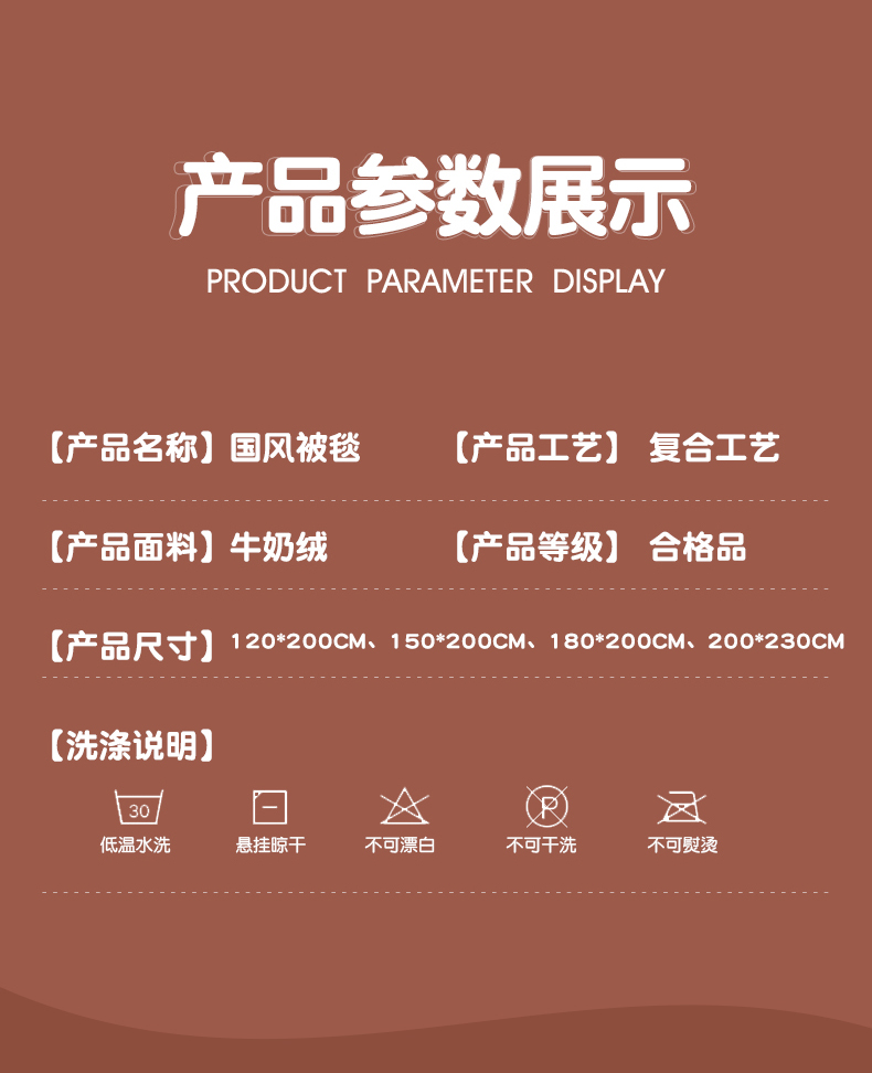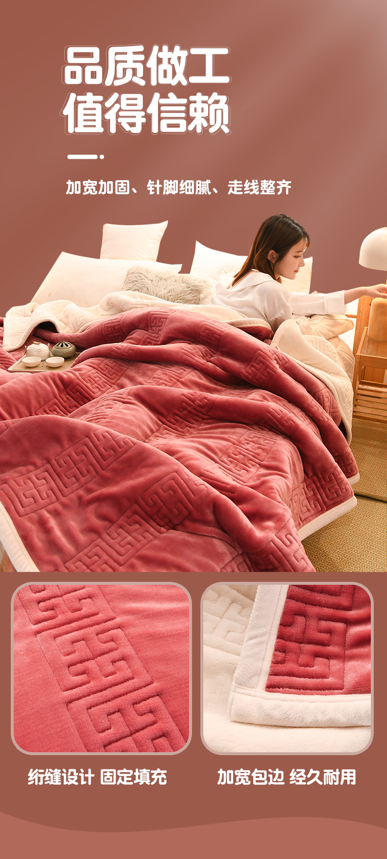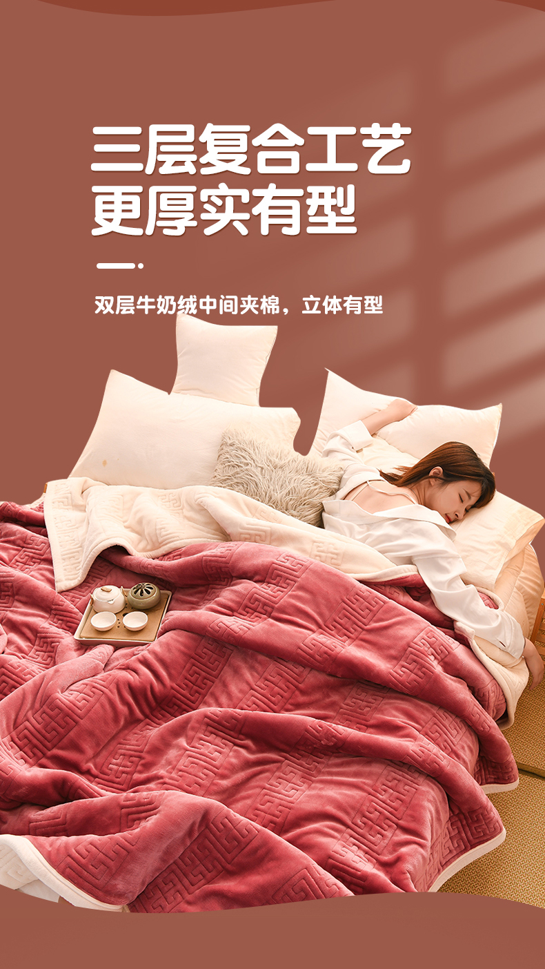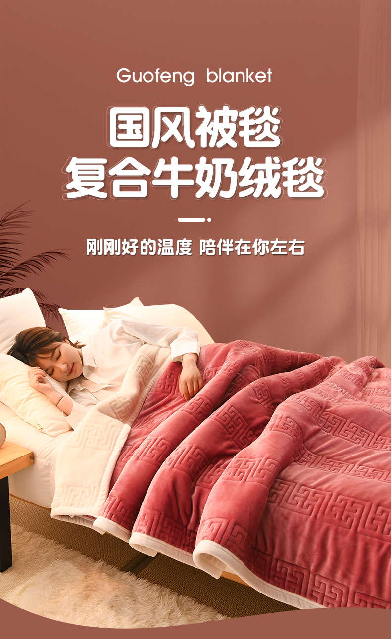商品名称:2023新款【加厚款】国风被毯 豆沙
