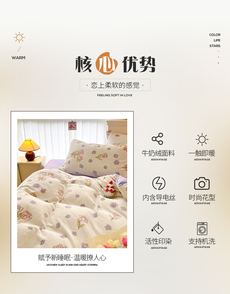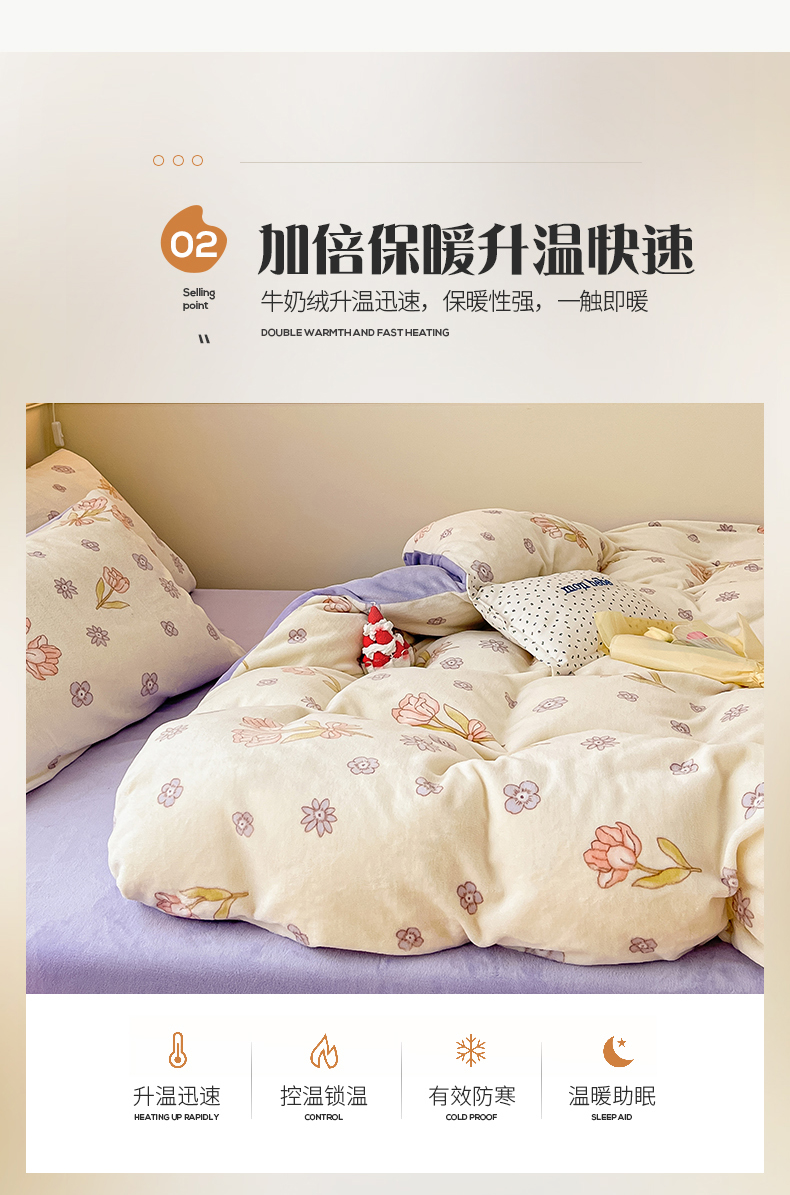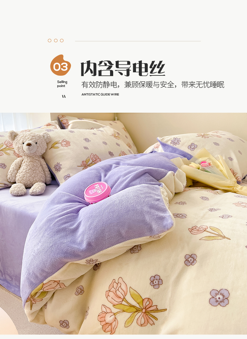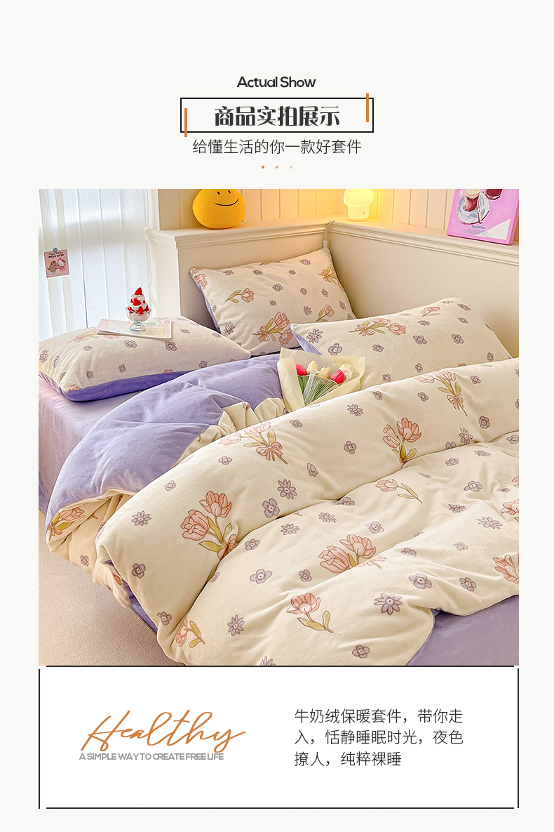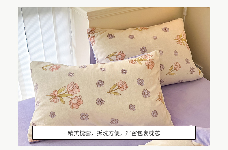商品名称:桃子 2023新款ins小清新韩系卡通少女心奶油兔子加厚牛奶绒系列四件套-第一批 绒-花颂