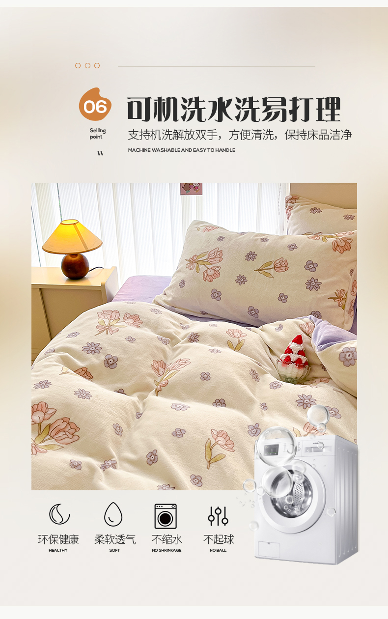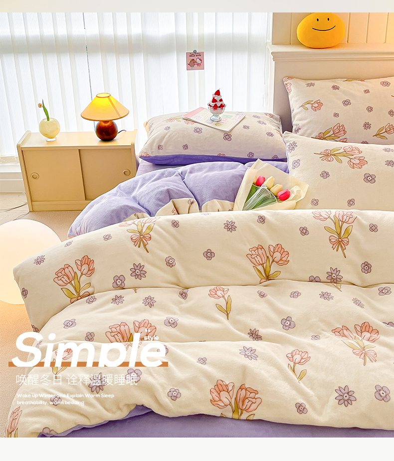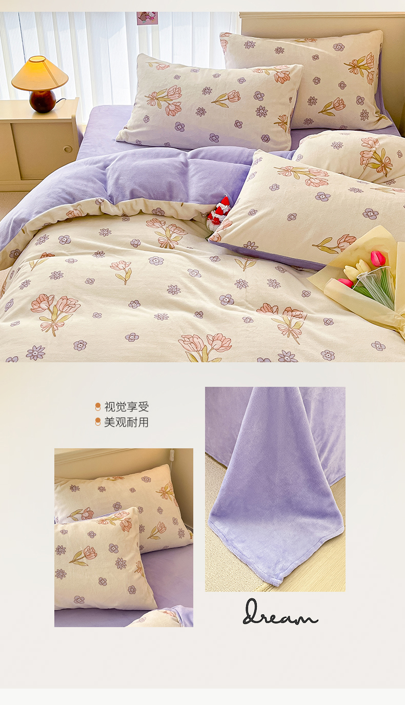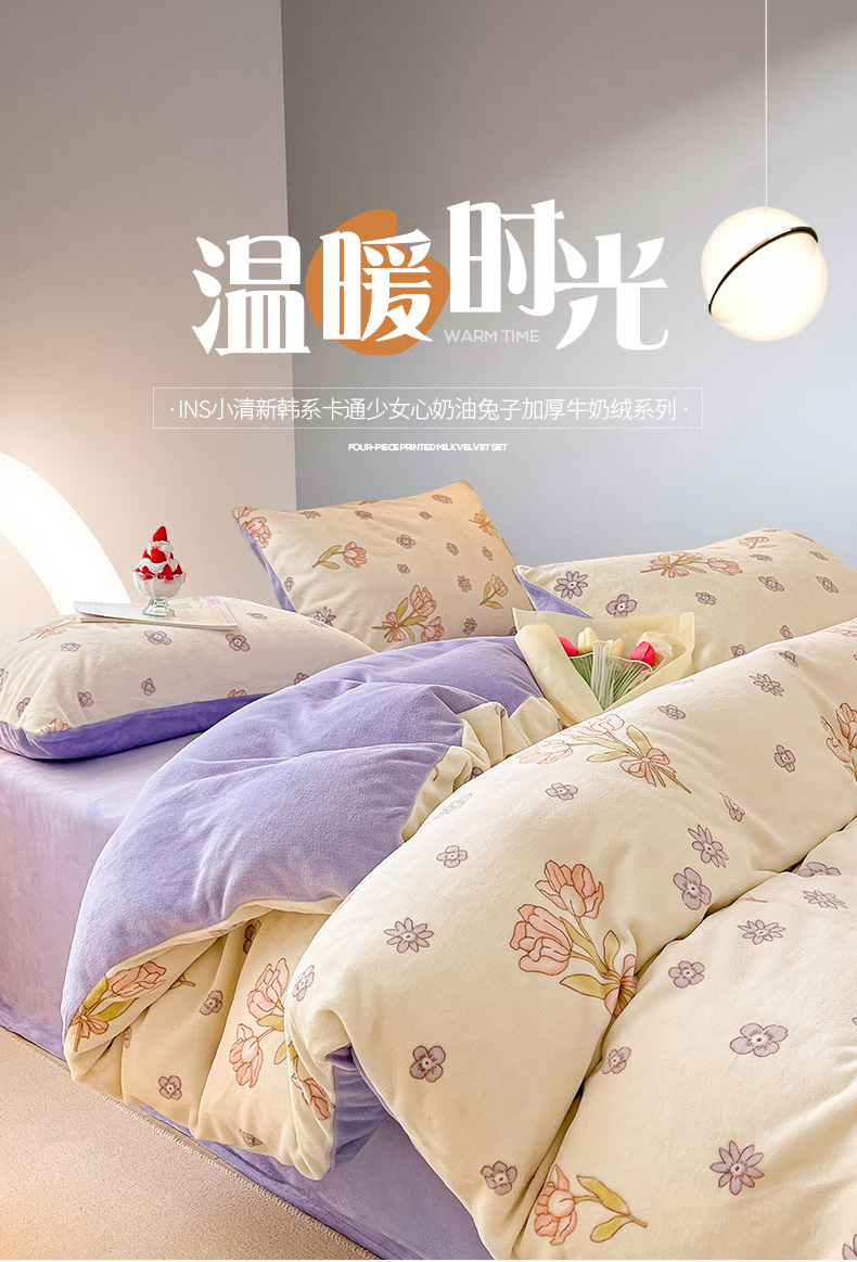 桃子 2023新款ins小清新韩系卡通少女心奶油兔子加厚牛奶绒系列四件套-第一批 绒-花颂