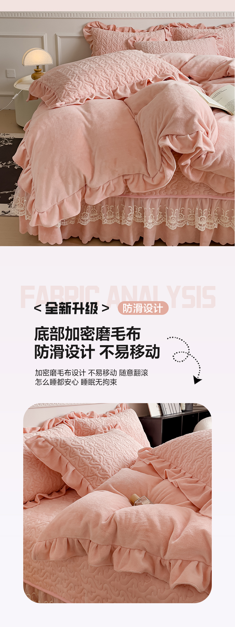 当前位置: 91家纺网 > 商品网购 > 床品套件 > 四件套 > 牛奶绒四件套 > 铠畅家纺 2023新款纯色蕾丝牛奶绒床盖四件套-遇见系列 桃粉
