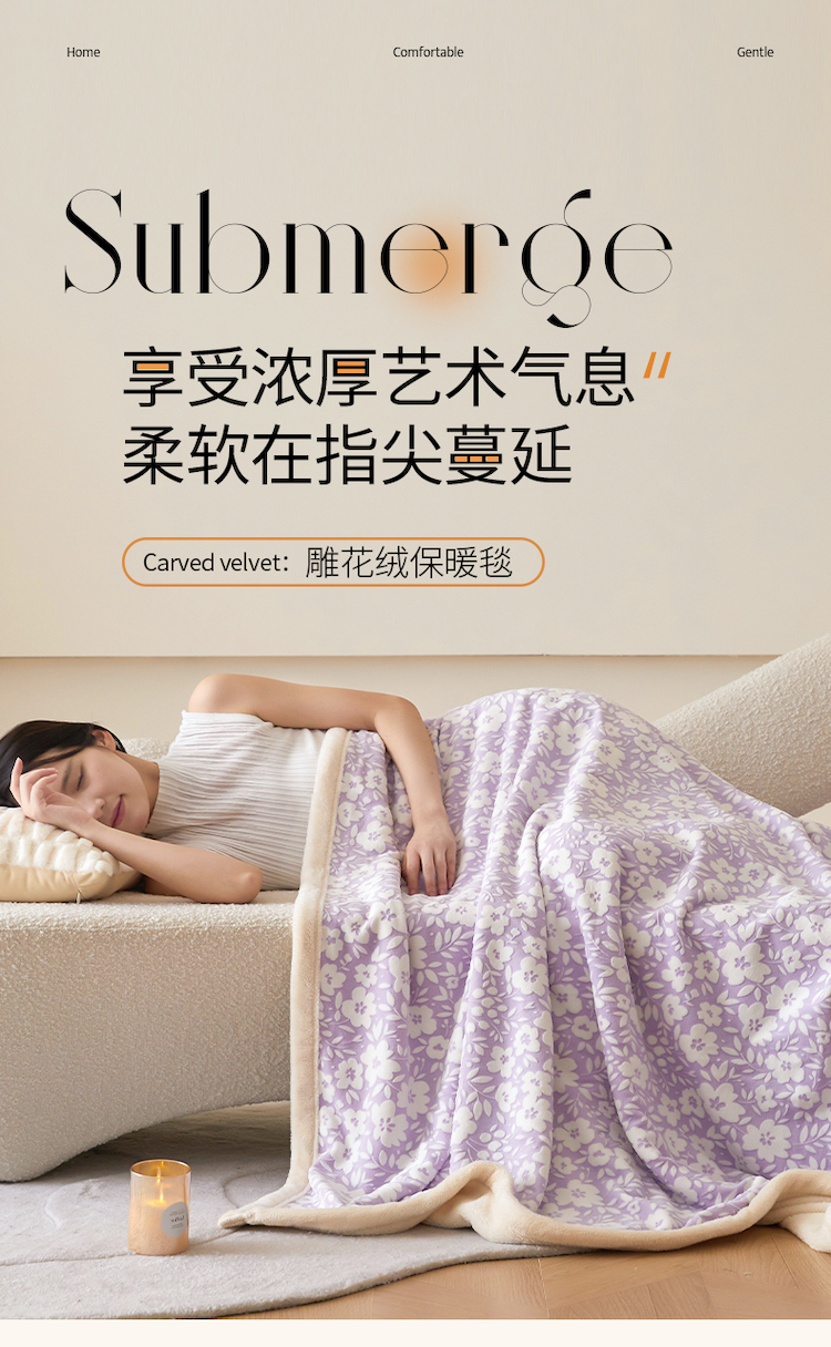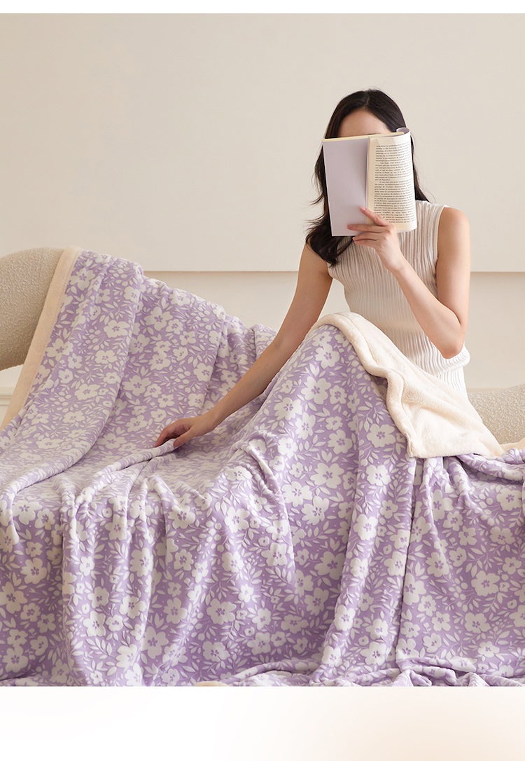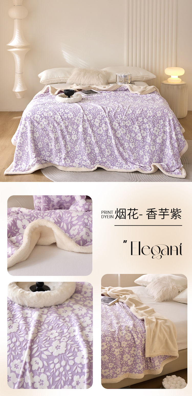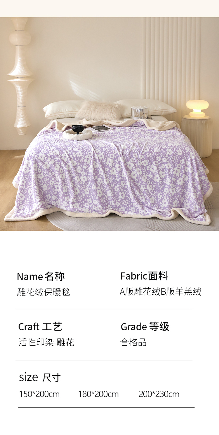 商品名称:铭动 2023新款雕花绒保暖毯-小花毛毯 烟花香芋紫