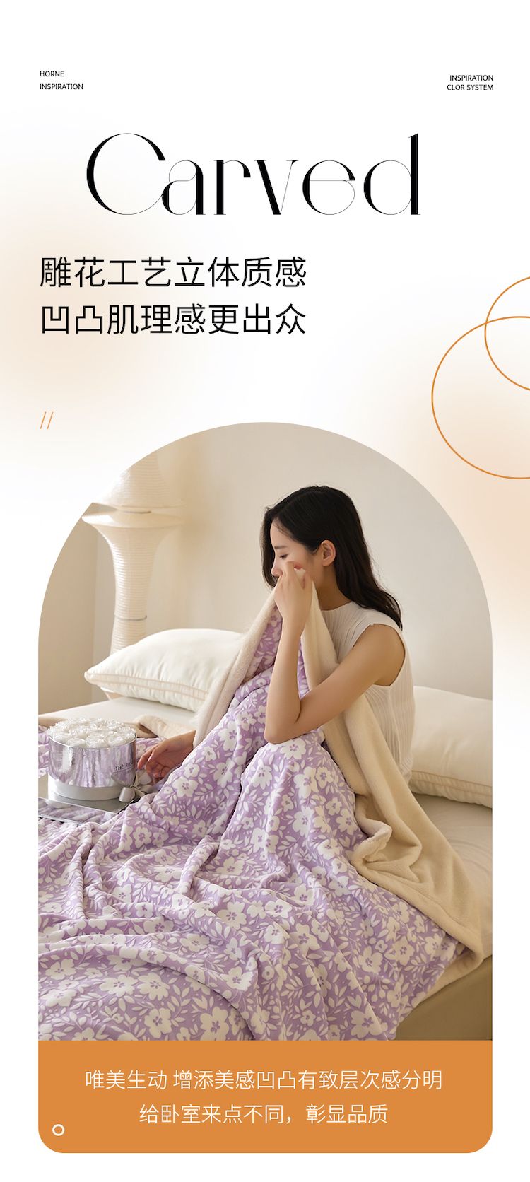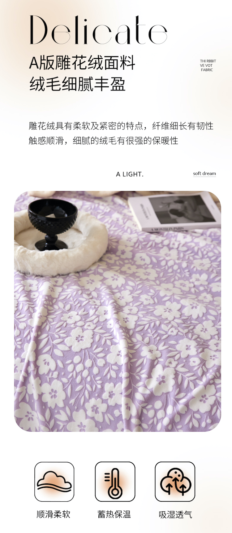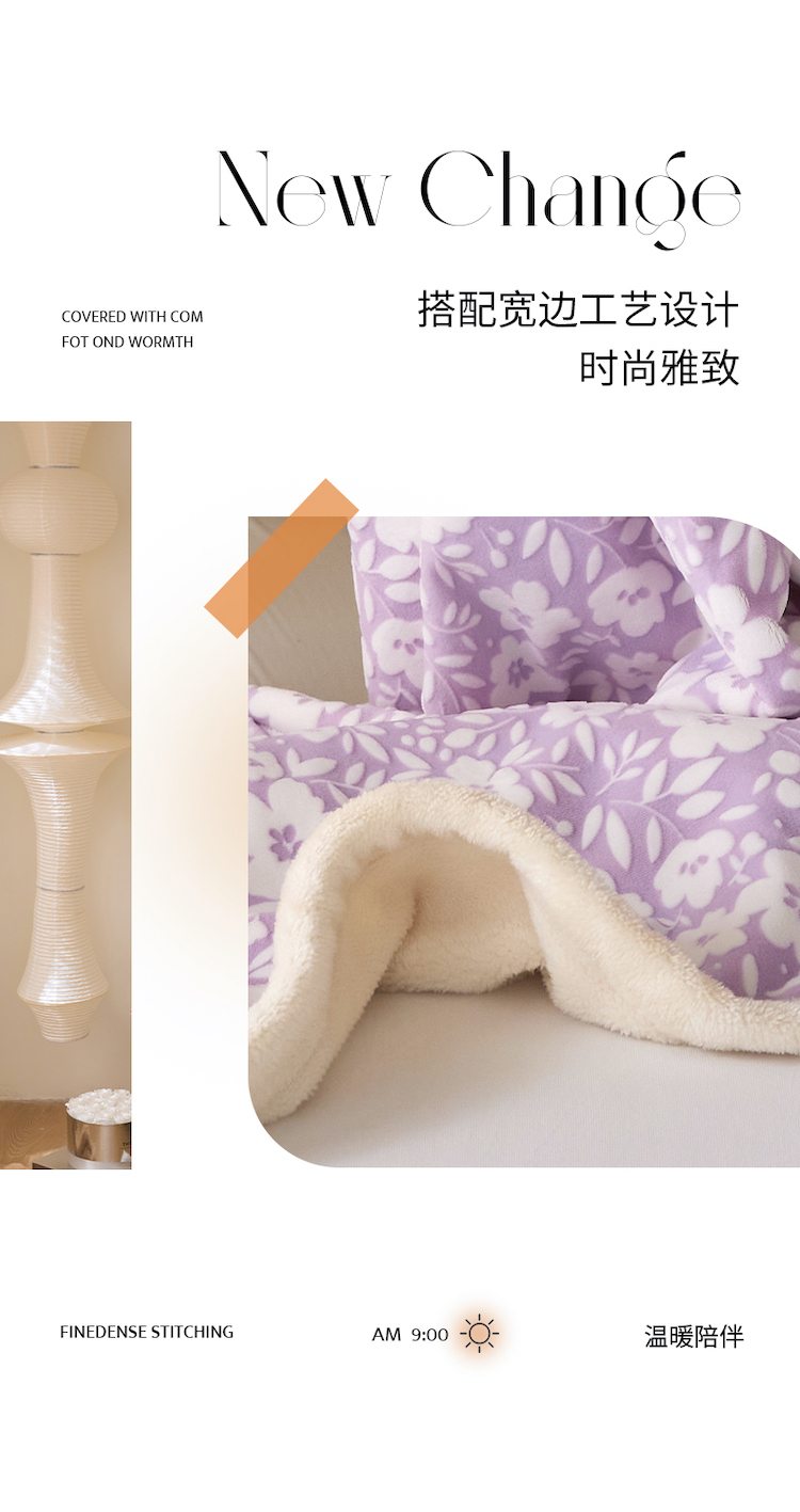 商品名称:铭动 2023新款雕花绒保暖毯-小花毛毯 烟花香芋紫