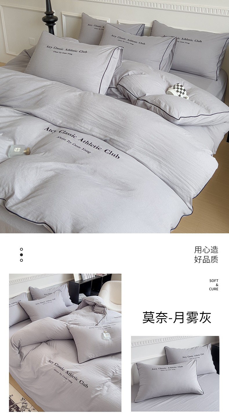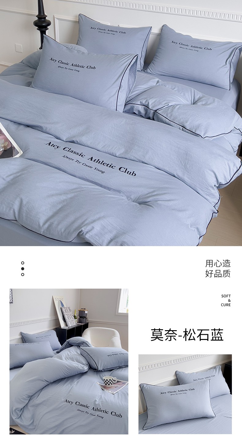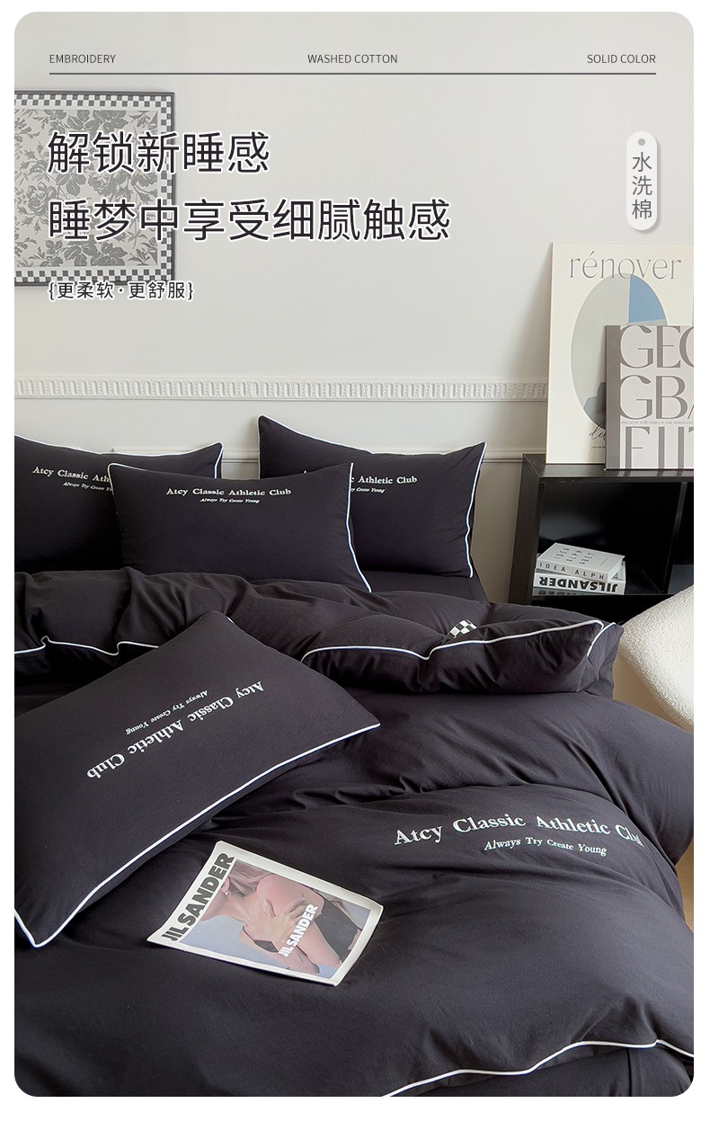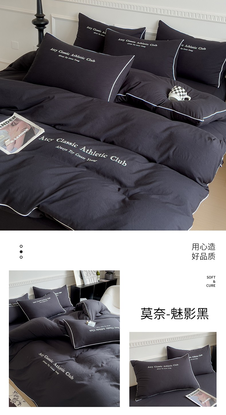 (总)尤米 2023新款莫奈系列水洗棉绣花麻绳款四件套,莫奈-魅影黑,莫奈-米杏色,莫奈-抹茶绿,莫奈-松石蓝,莫奈-月光白,莫奈-月雾灰