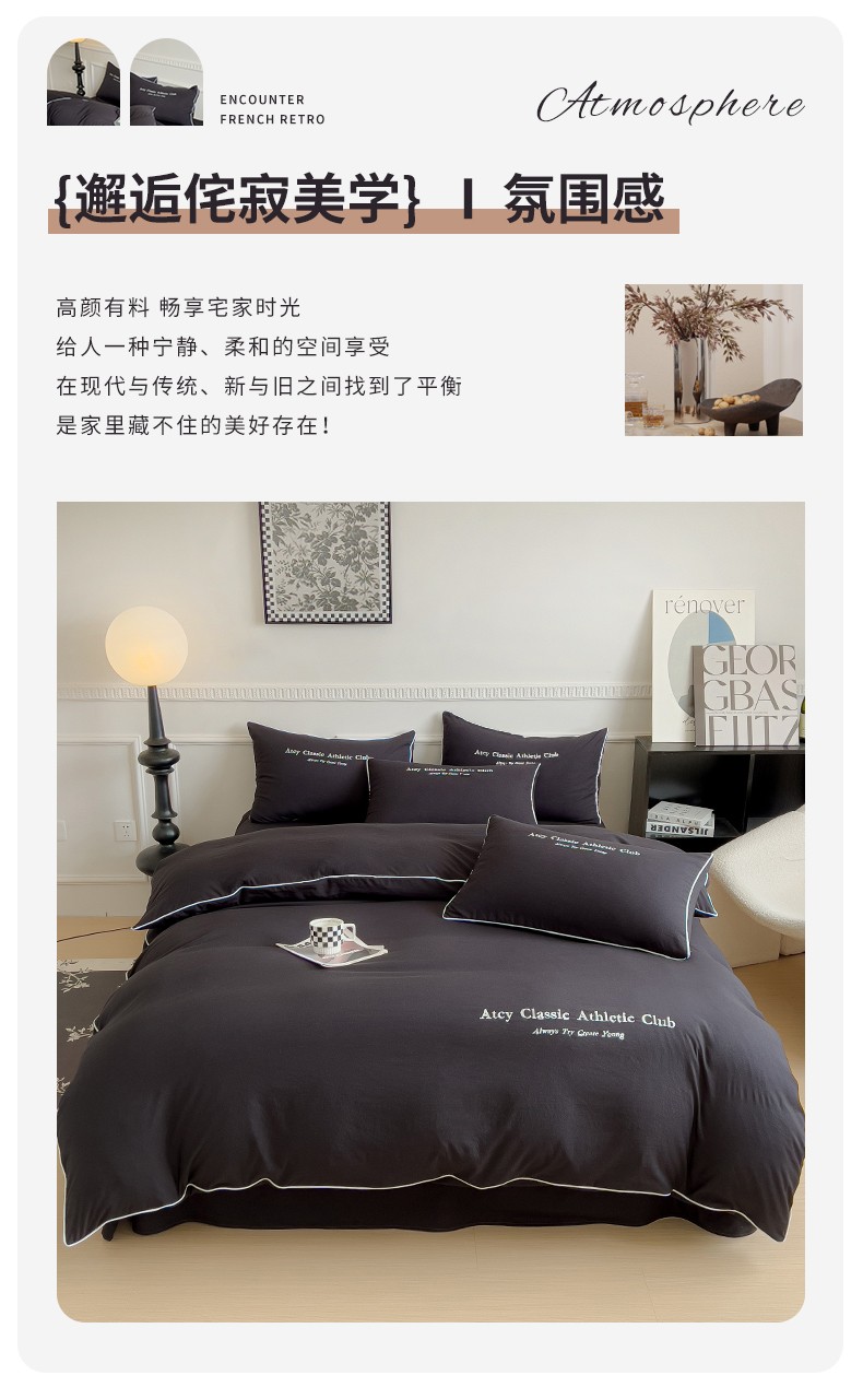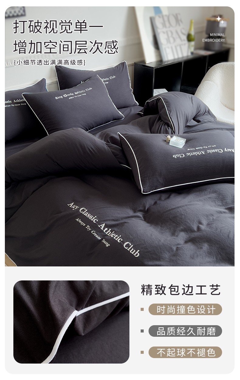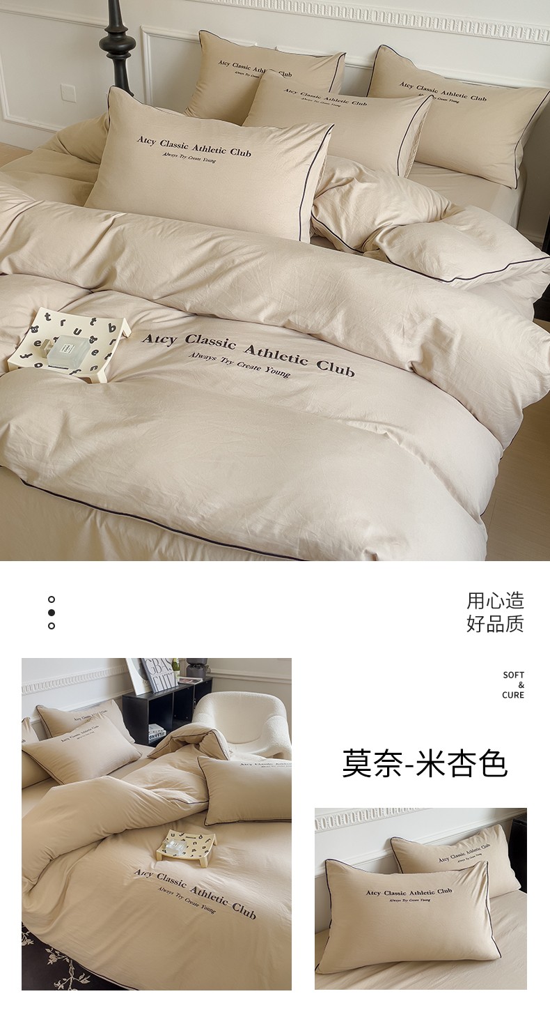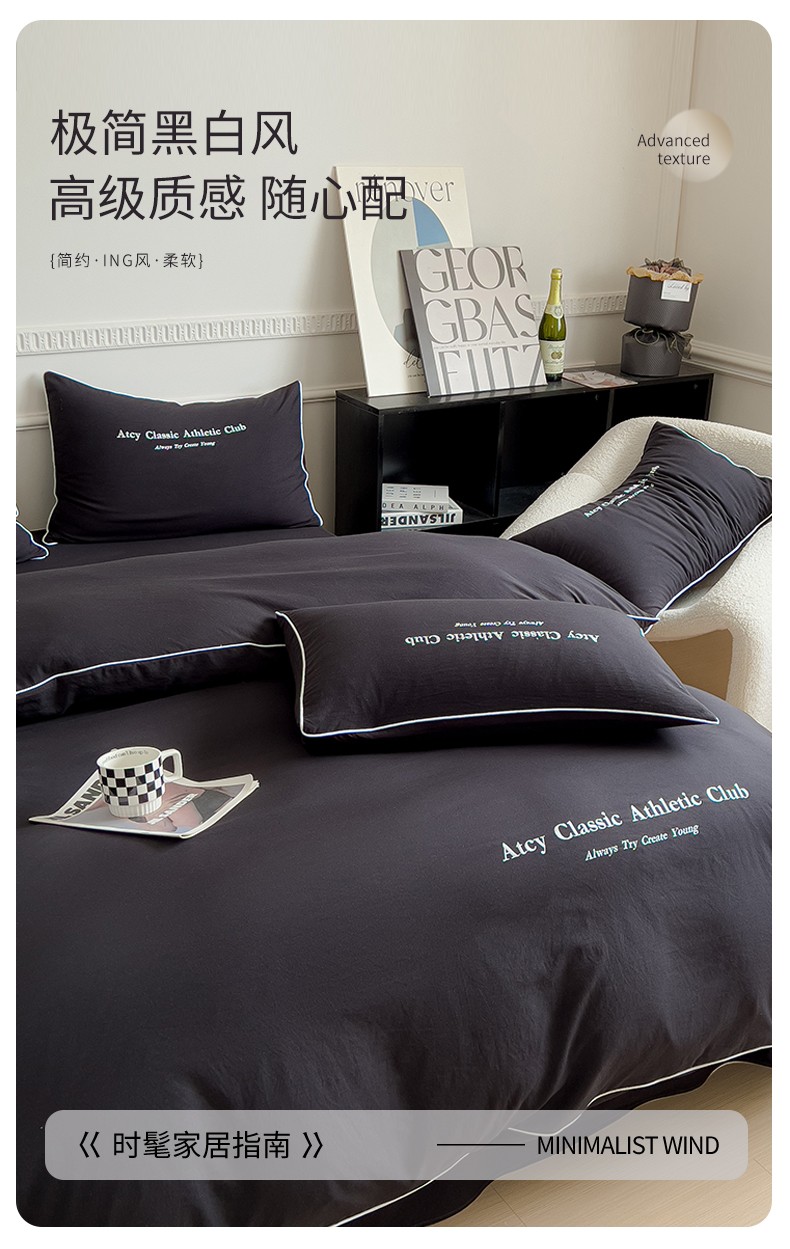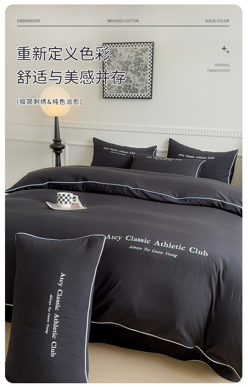 (总)尤米 2023新款莫奈系列水洗棉绣花麻绳款四件套,莫奈-魅影黑,莫奈-米杏色,莫奈-抹茶绿,莫奈-松石蓝,莫奈-月光白,莫奈-月雾灰