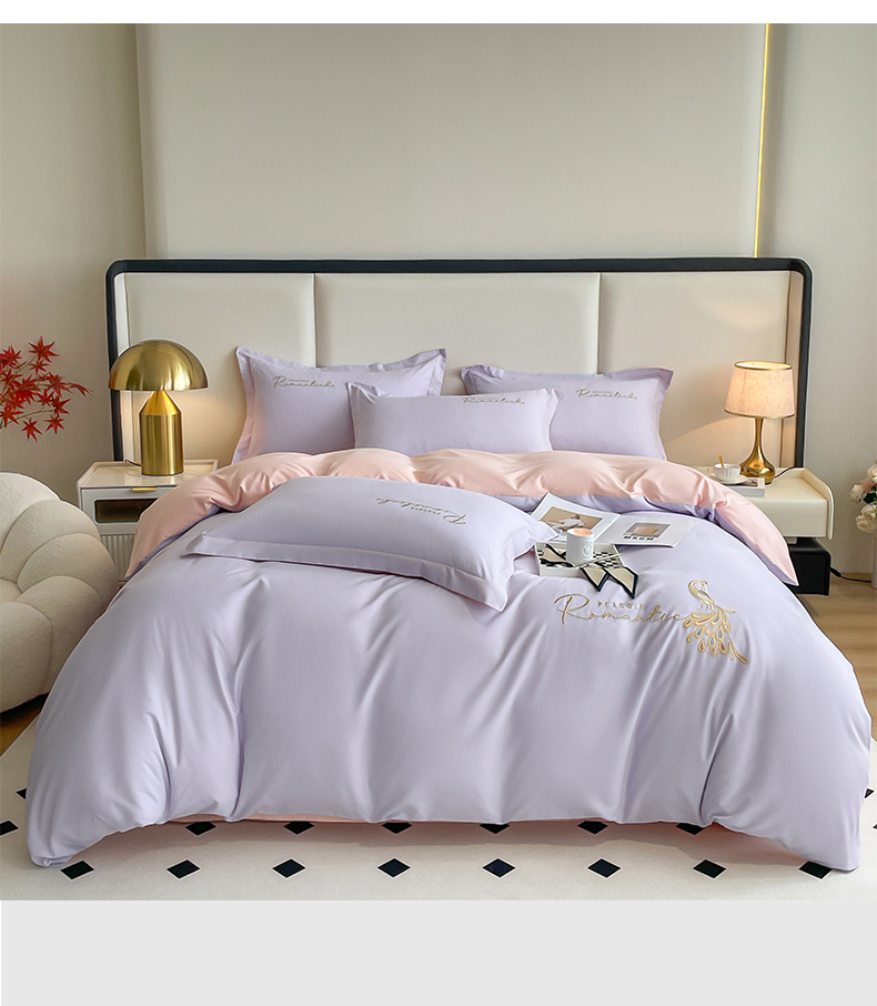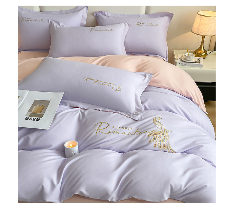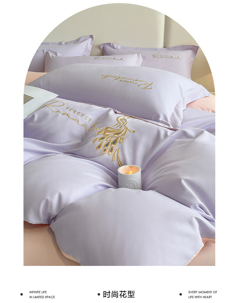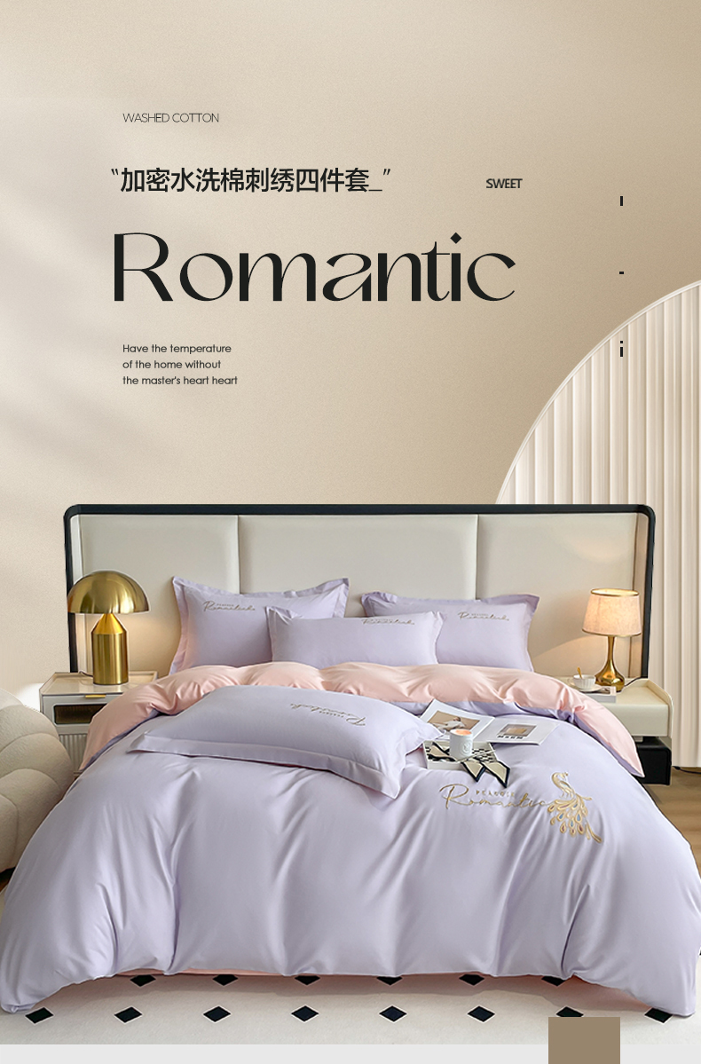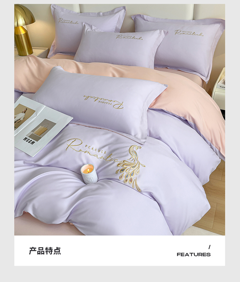 商品名称:花愿(原花纪) 2023新款加密水洗棉刺绣四件套-蓝孔雀 蔷薇紫+樱花粉