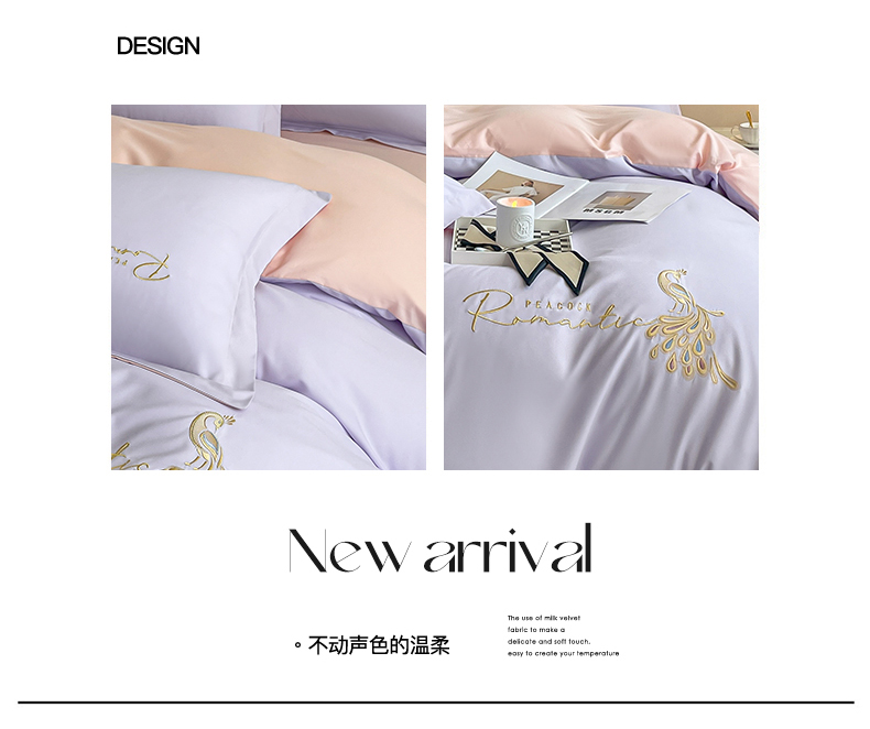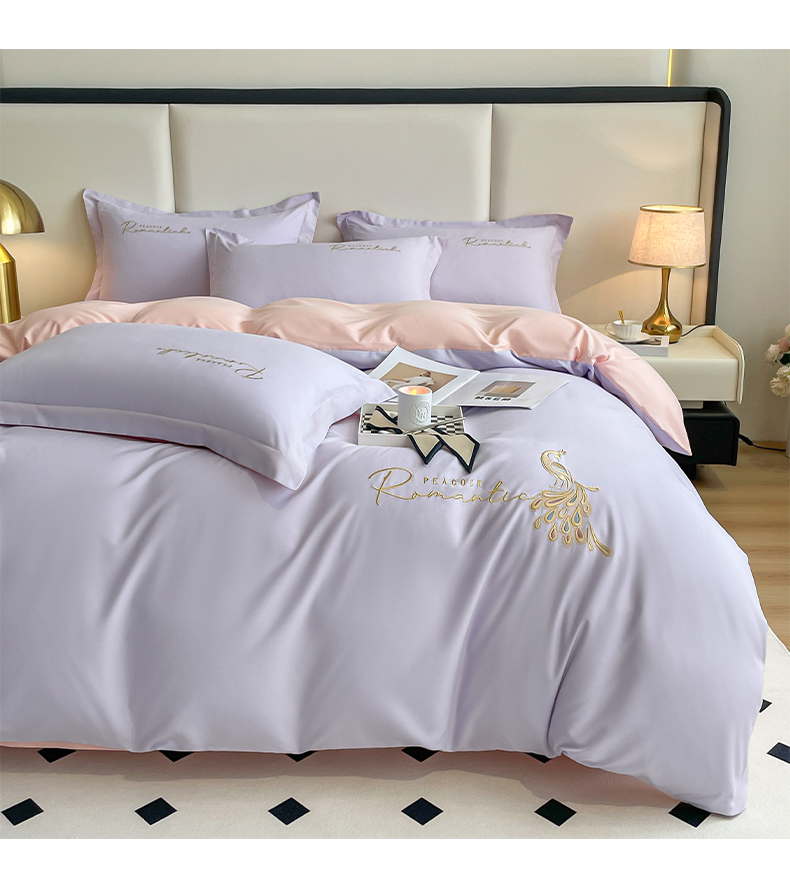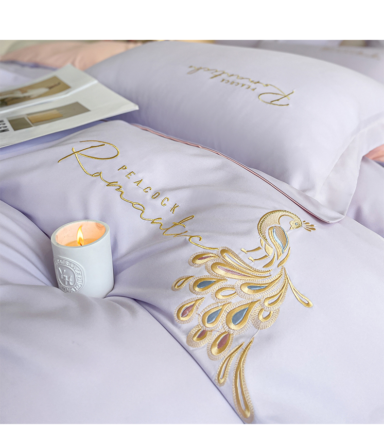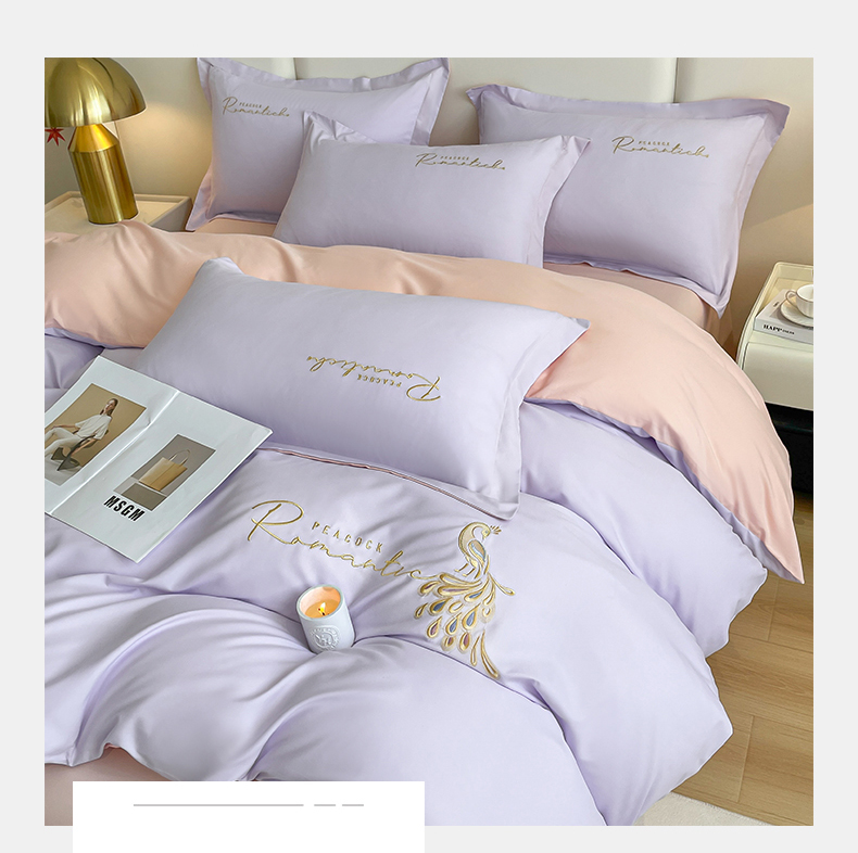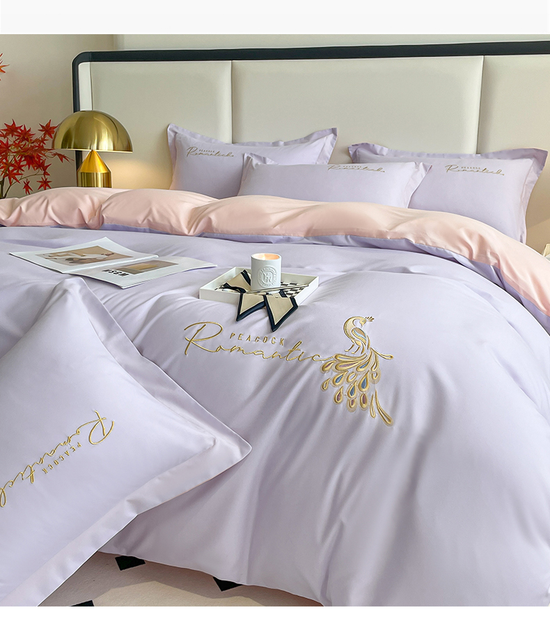 商品名称:花愿(原花纪) 2023新款加密水洗棉刺绣四件套-蓝孔雀 蔷薇紫+樱花粉