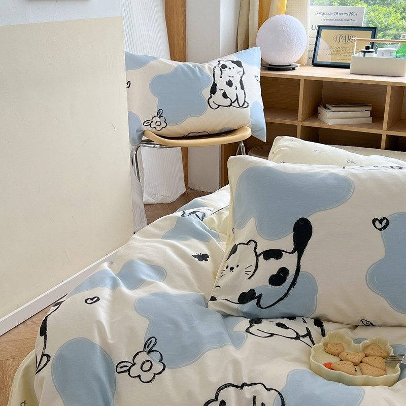 商品名称:时年 2023新款全棉印花优选系列四件套 奶牛猫
