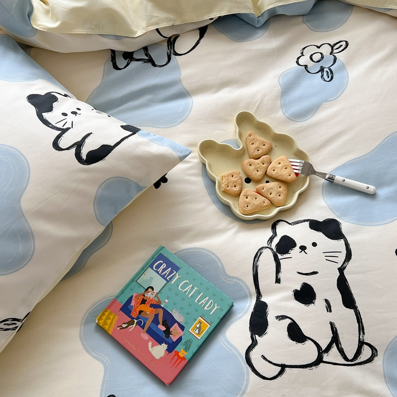 时年 2023新款全棉印花优选系列四件套 奶牛猫