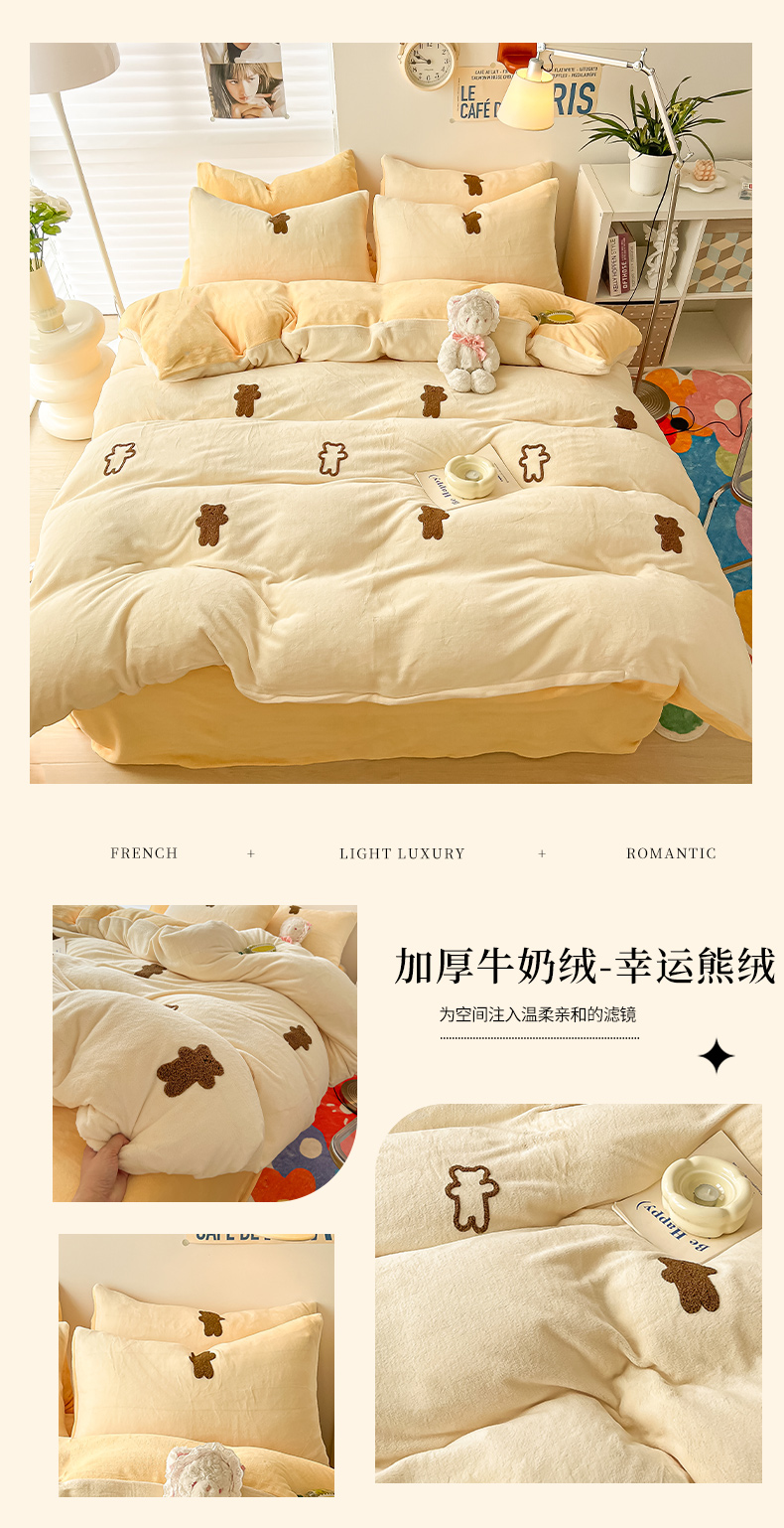 当前位置: 91家纺网 > 商品网购 > 床品套件 > 四件套 > 毛巾绣四件套 > 韩都 2023新款冬季加厚牛奶绒毛巾绣四件套 加厚牛奶绒-幸运熊绒