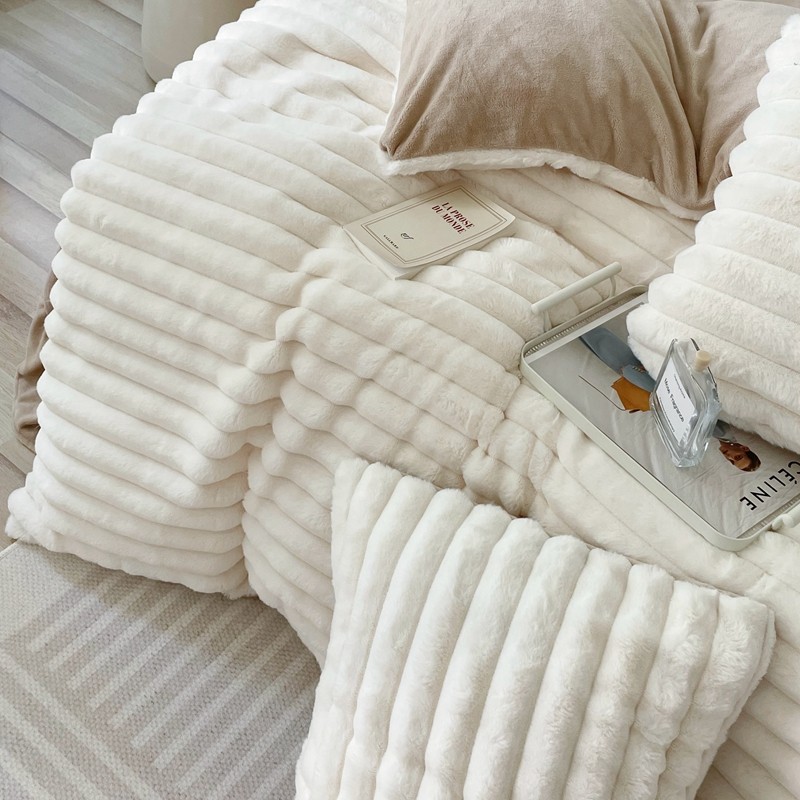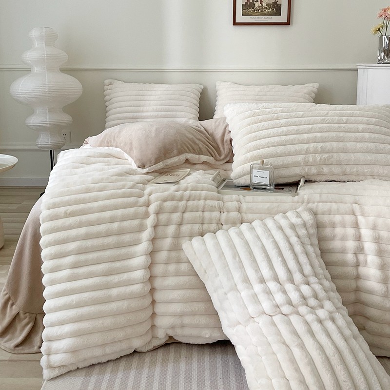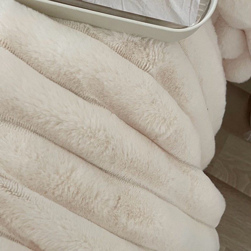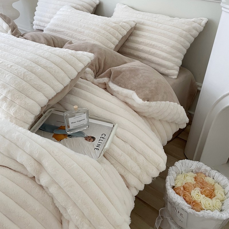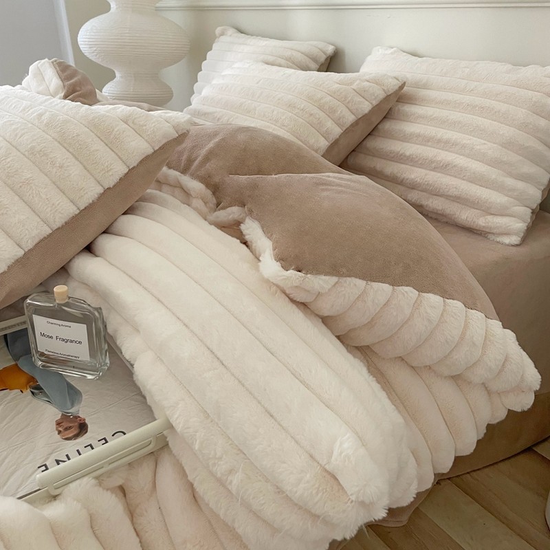 商品名称:畅畅家纺 2023新款兔毛绒兔兔绒懒兔绒立体剪花牛奶绒四件套 波浪-白+咖