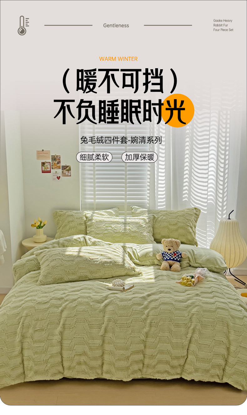N先生 2024秋冬新款9斤重兔毛绒四件套-婉清系列 婉清-绿