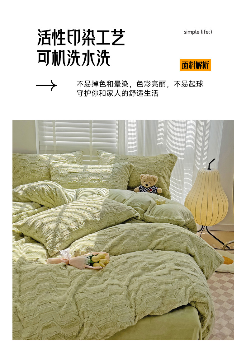商品名称:N先生 2024秋冬新款9斤重兔毛绒四件套-婉清系列 婉清-绿