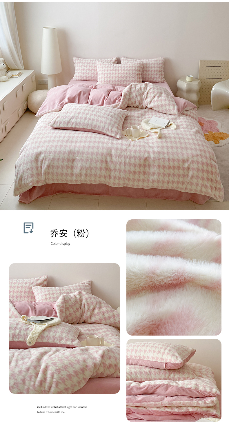 商品名称:潘朵拉 2023新款秋冬ins韩风专版印花保暖兔兔毛绒四件套 乔安(粉)