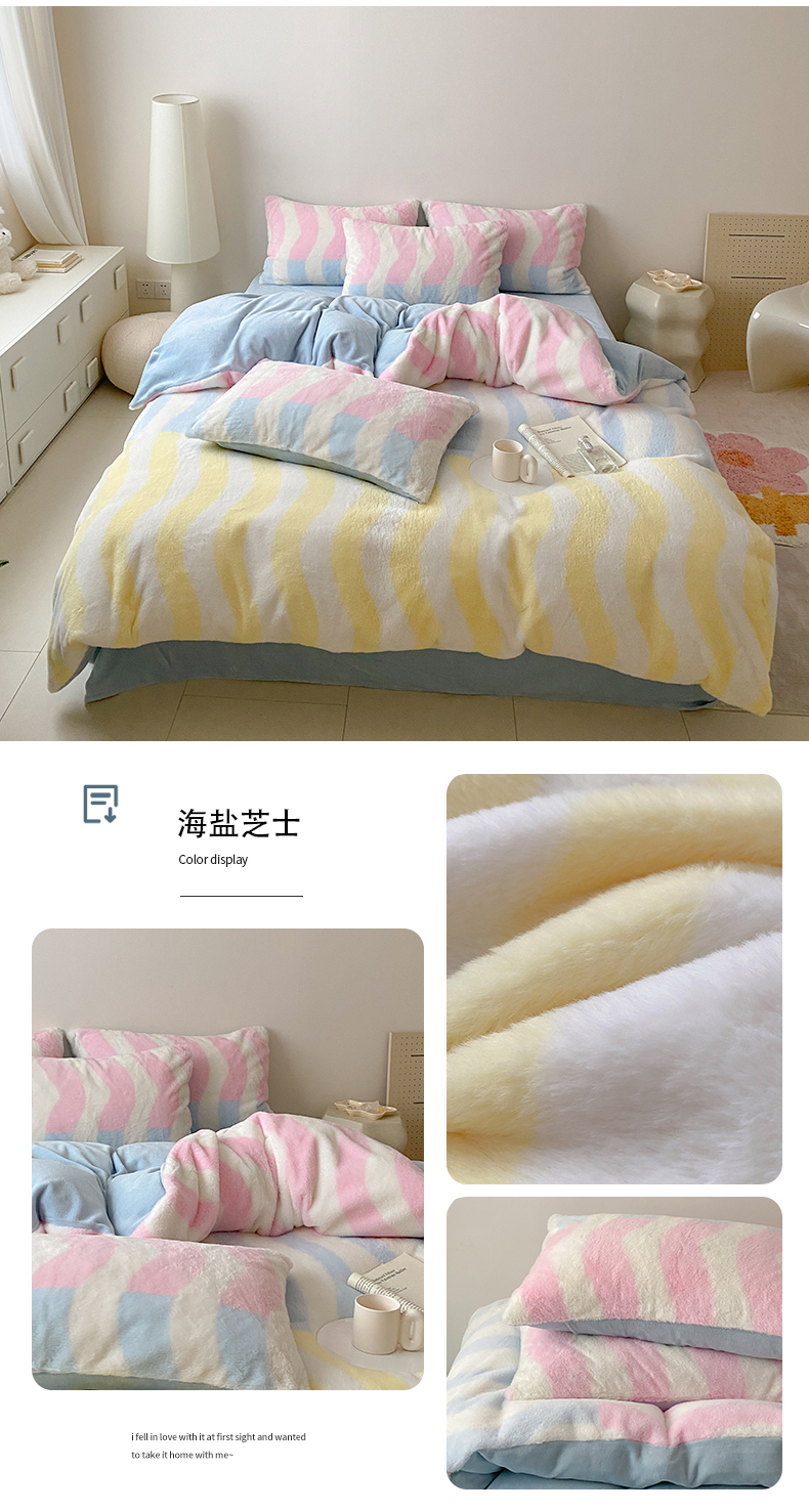 (总)潘朵拉家纺 2025条纹花边牛奶绒四件套,条纹曲-黄蓝,条纹曲-蓝粉,条纹曲-绿紫,条纹曲-紫粉