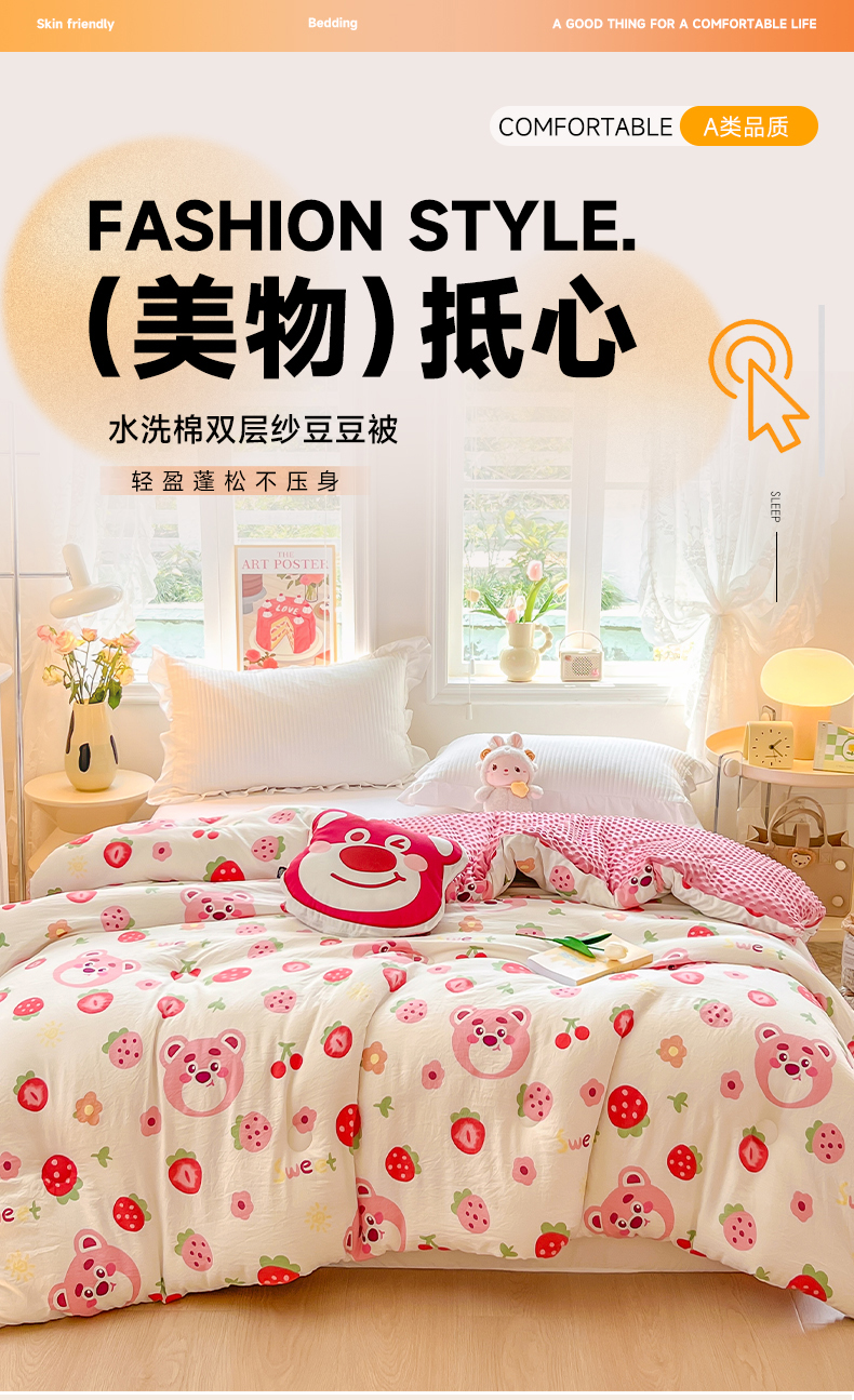 (总)居易简 2025新款水洗棉双层纱豆豆绒被被子被芯冬被春秋被豆豆被加绒直播 ,草莓蛋糕,恐龙星球,曼塔玫瑰,童话小熊,兔sweet,小桃兔兔,小熊院长,海棠朵朵,棉花絮语,莫奈庄园,皮皮狗,青春绽放