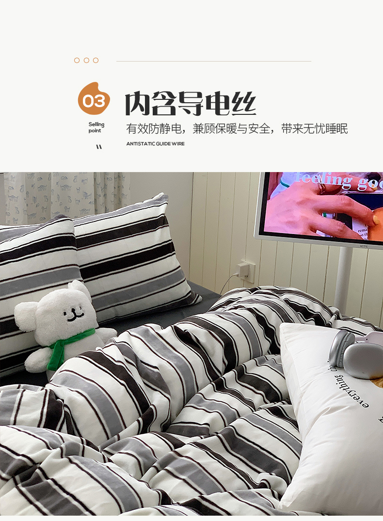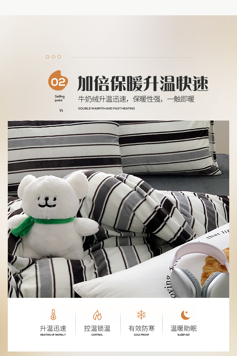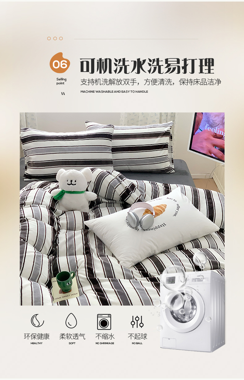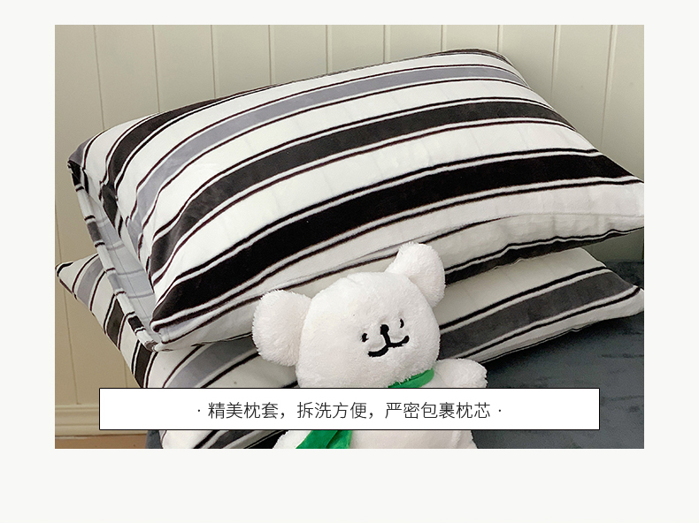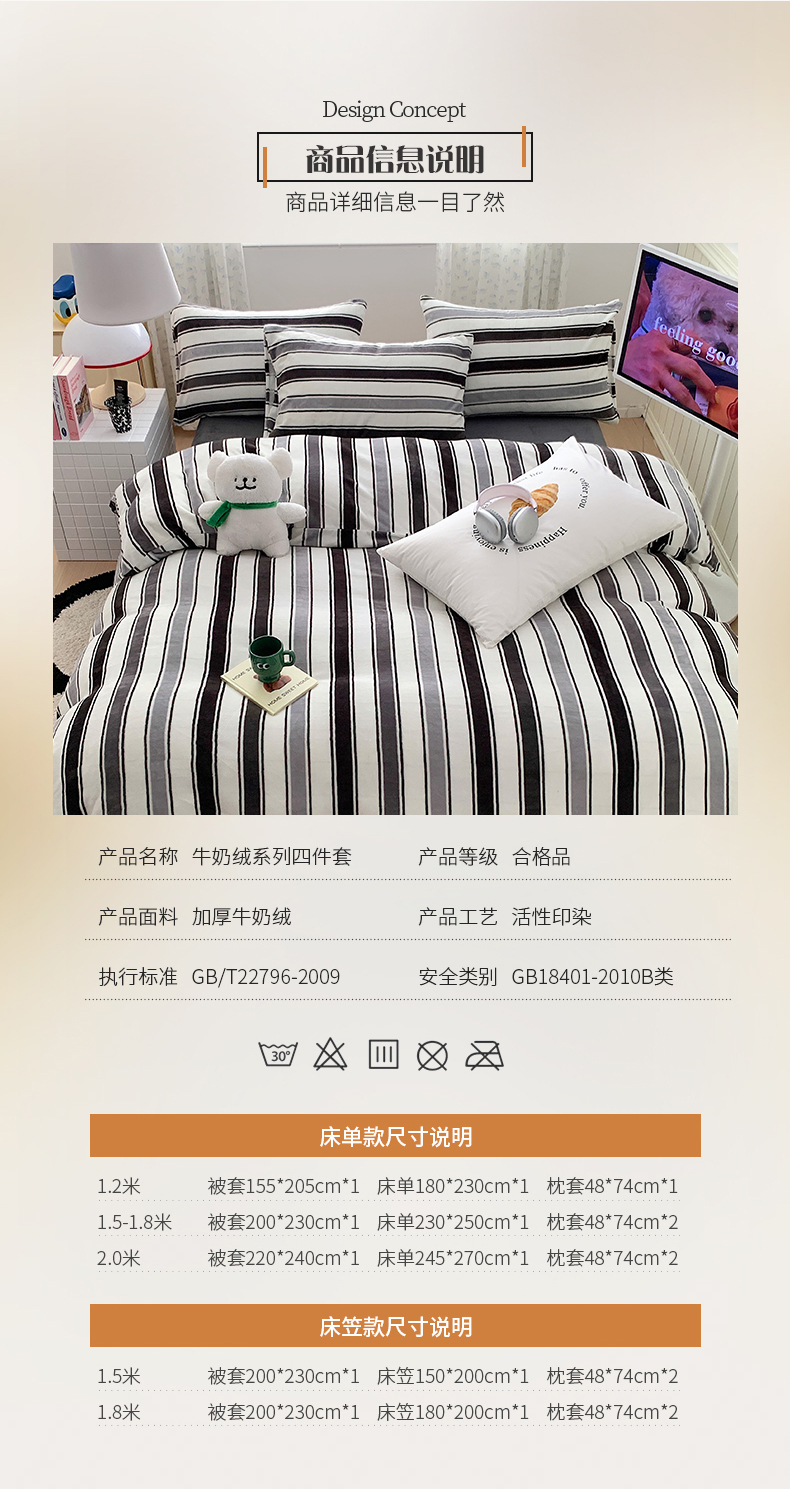 商品名称:桃子家居 2023新款ins简约时尚奶油格子北欧极简加厚牛奶绒四件套 简尚黑