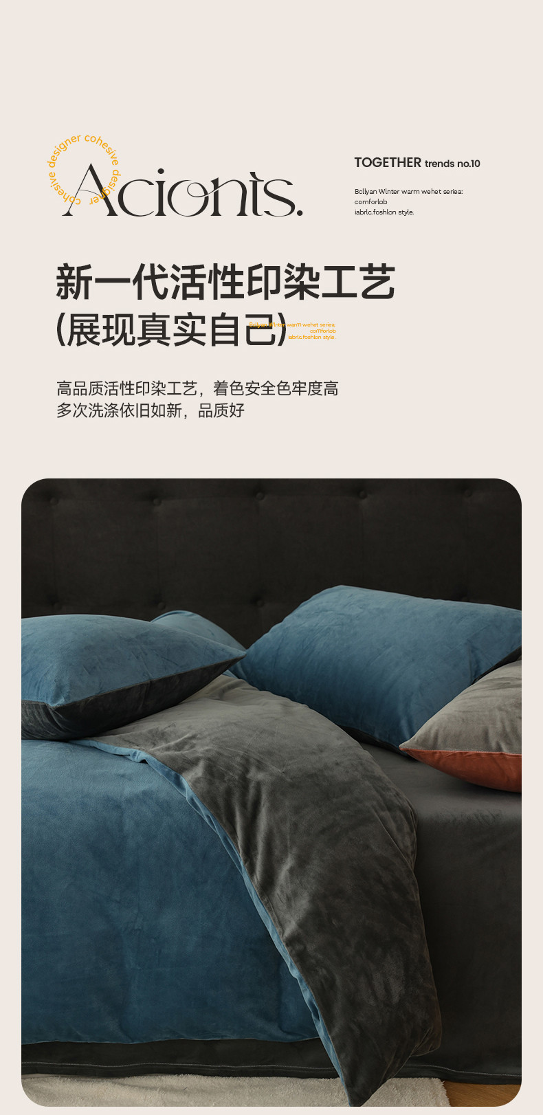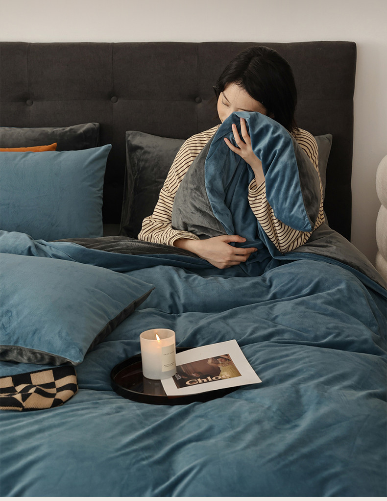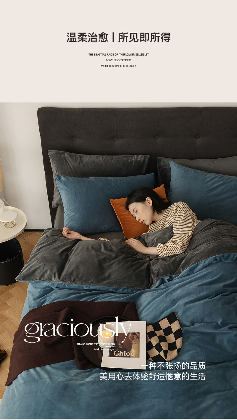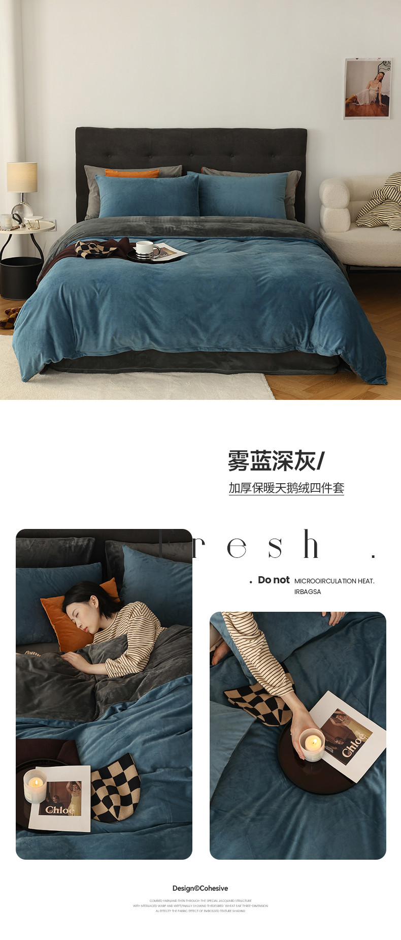 当前位置: 91家纺网 > 商品网购 > 床品套件 > 四件套 > 阳绒四件套 > 寐眠 2023新款双面保暖加厚天鹅绒四件套 雾蓝深灰